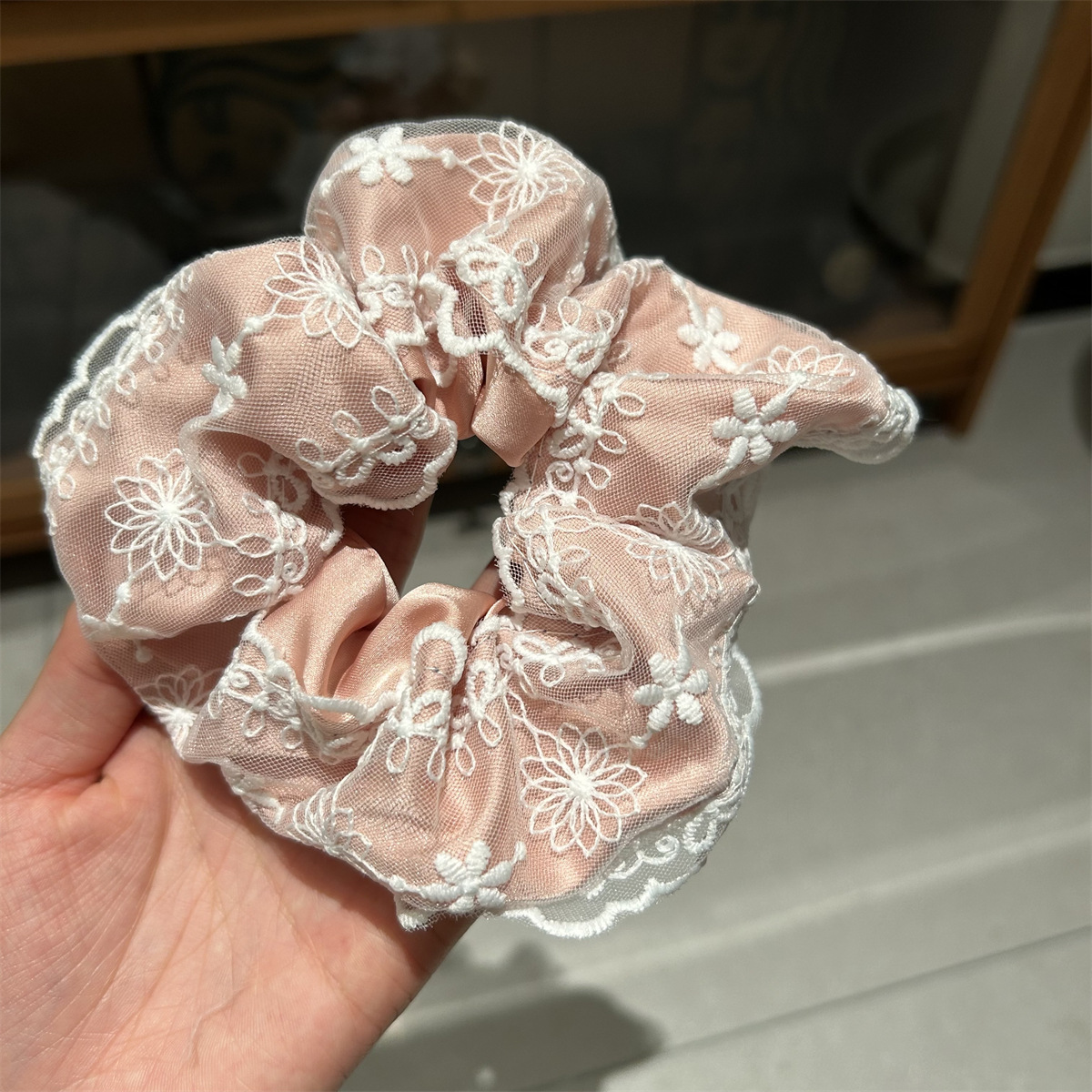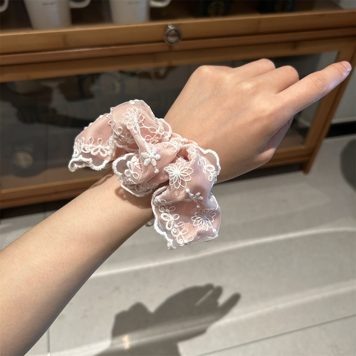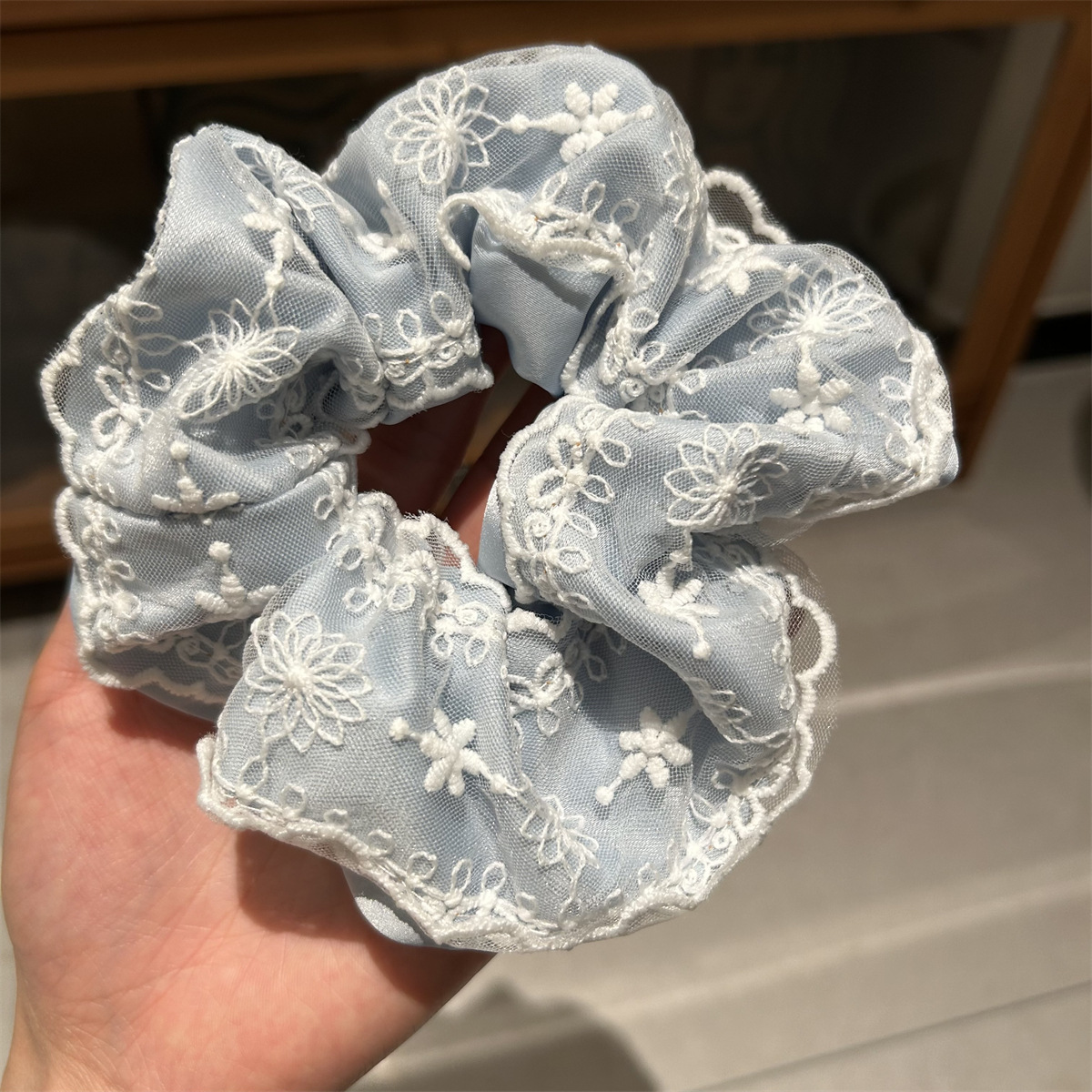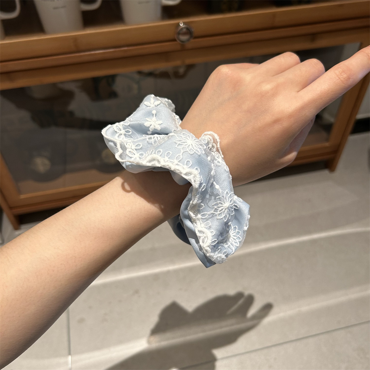 奶蓝蕾丝刺绣花少女芭蕾肠圈发圈头饰高弹扎头发马尾头绳发饰