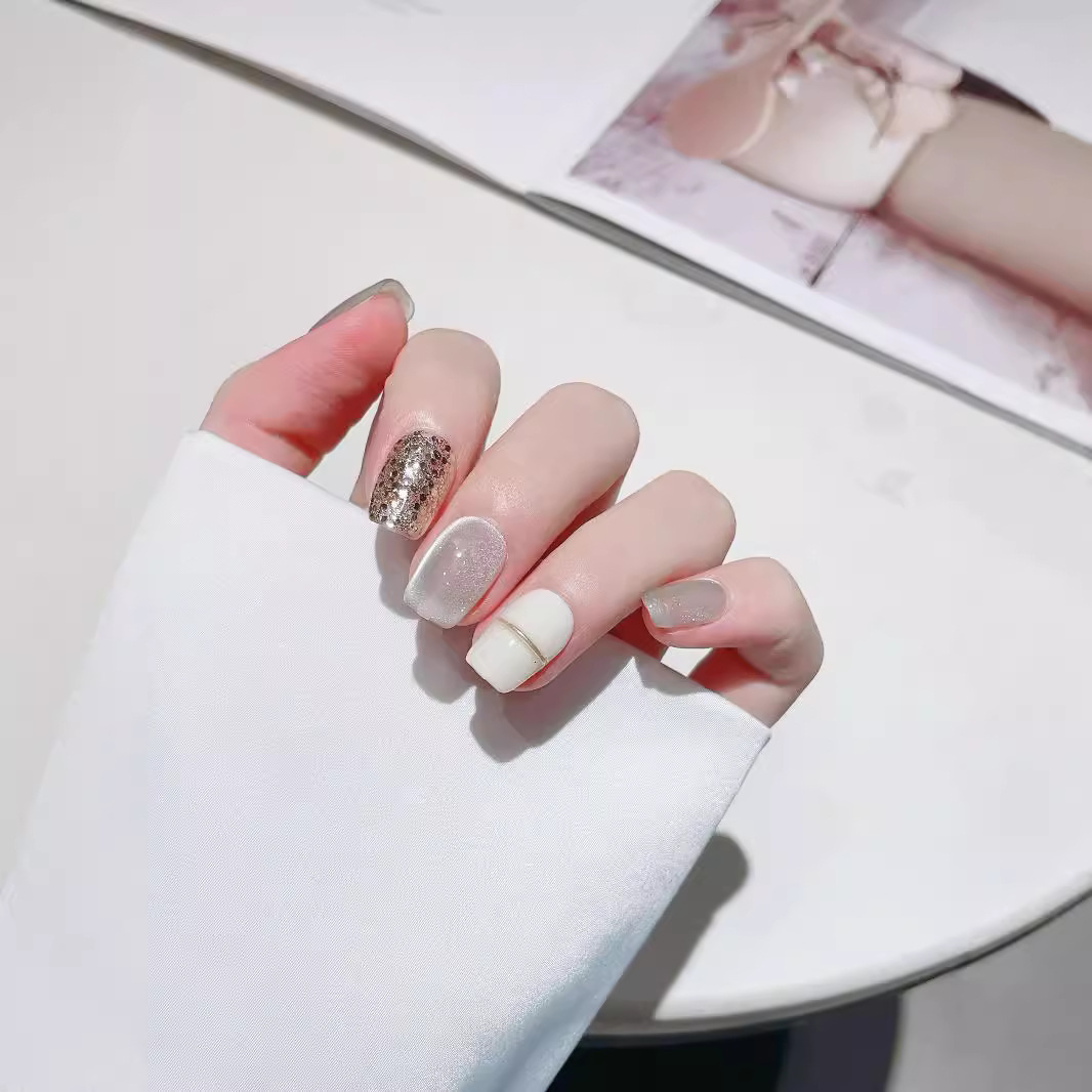 玻璃珠猫眼 简约百搭光疗美甲 纯手工穿戴甲显白甲片短款美甲