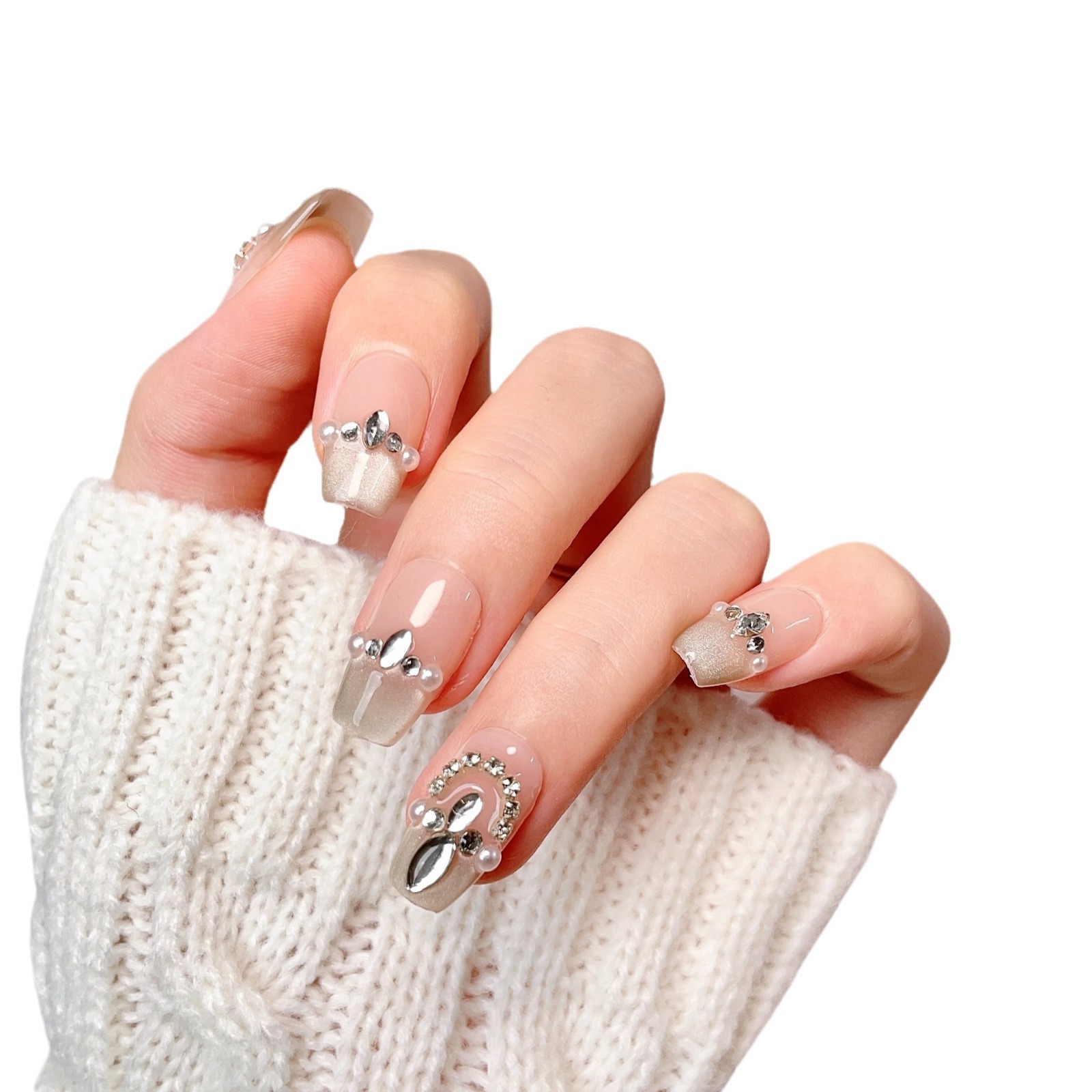 晶石猫眼爆闪穿戴甲纯手工美甲贴片小红书新款法式假指甲