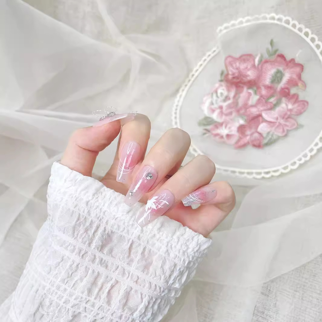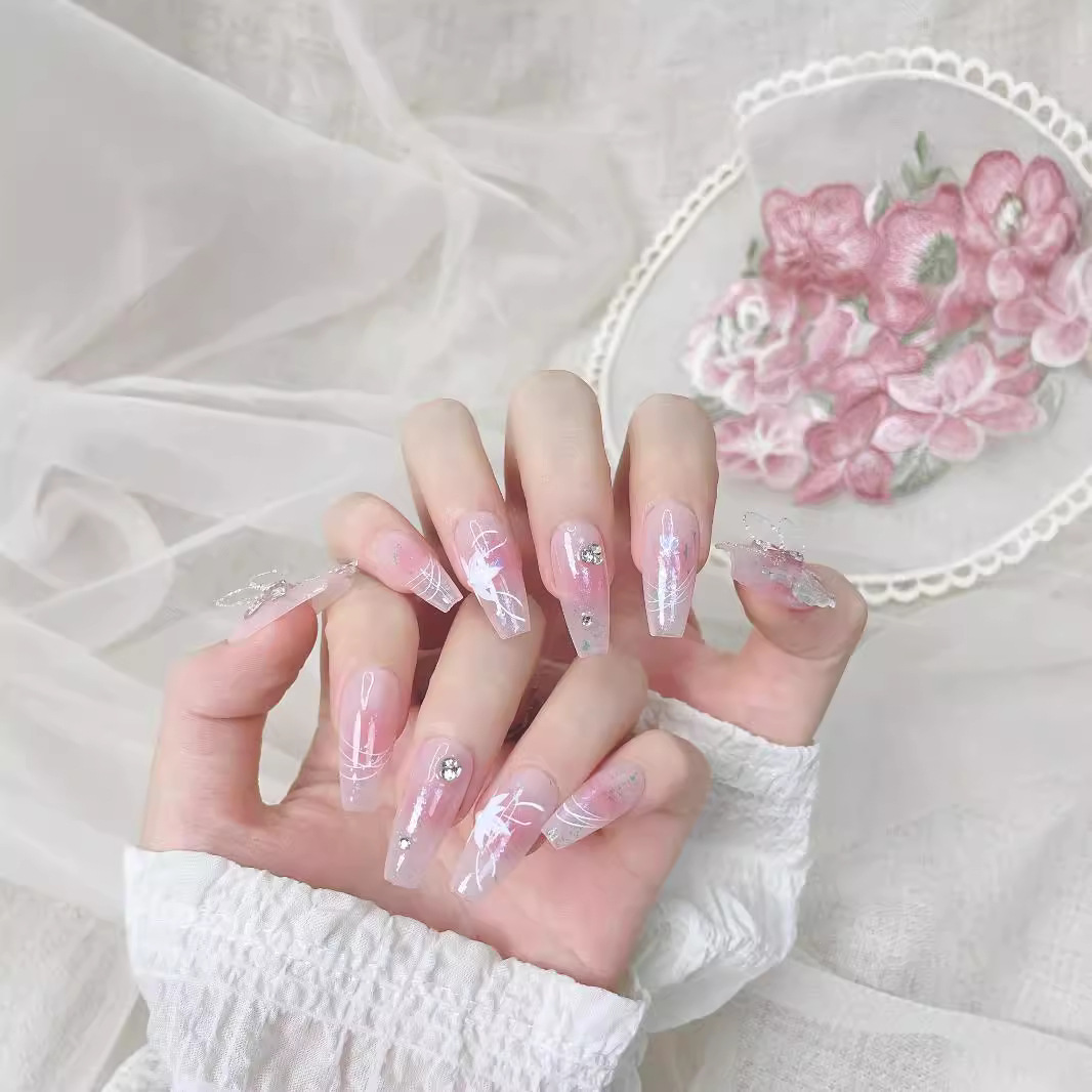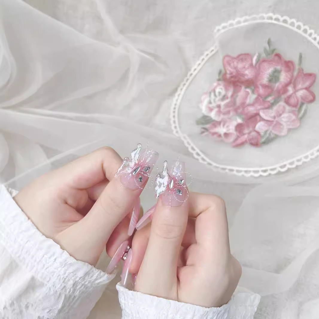 蝴蝶千金甜心短短学生上班族腮红美甲小短甲纯手工穿戴甲小清新可