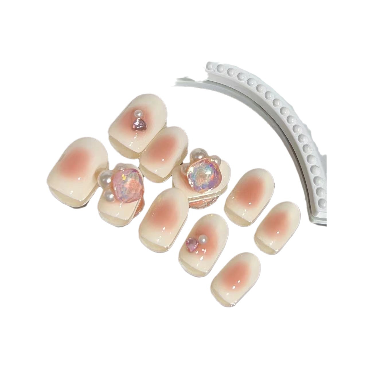 穿戴甲纯手工美甲成品假指甲贴片可爱腮红温柔奶白爆闪琉璃钻短款
