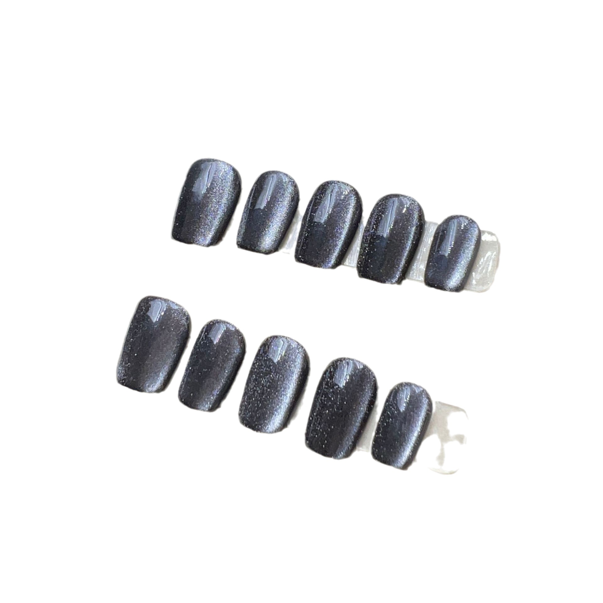 黛瑞森纯手工美甲穿戴甲假指甲贴片简约黑色银猫眼福利批发短款甲