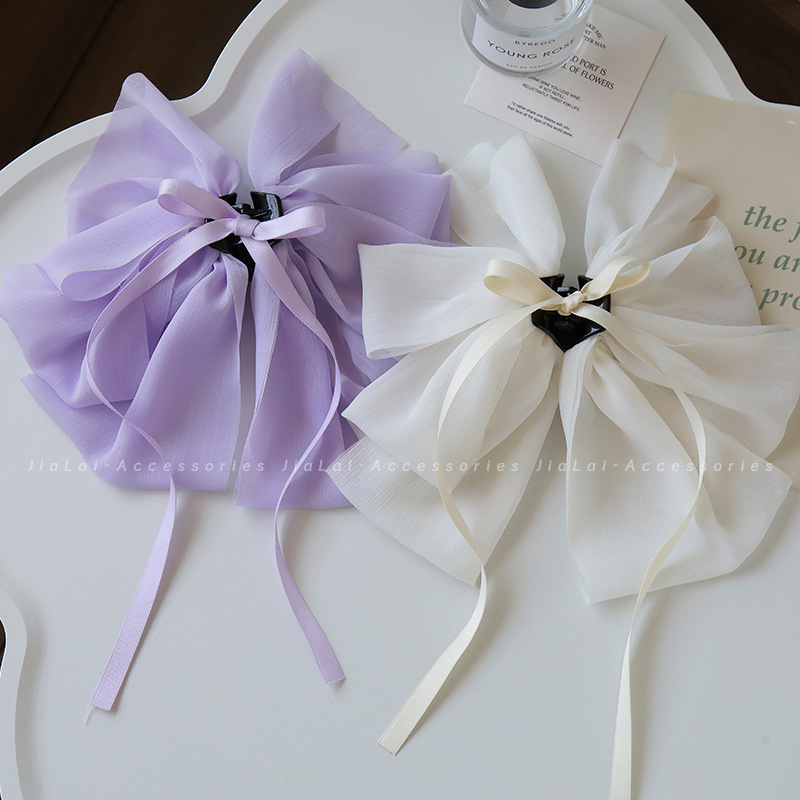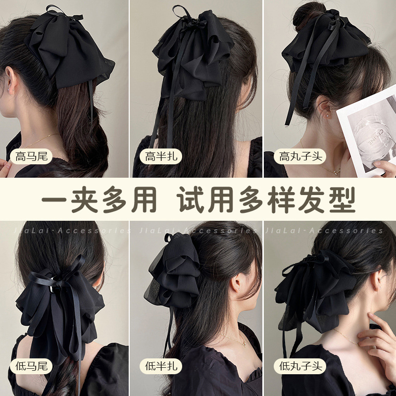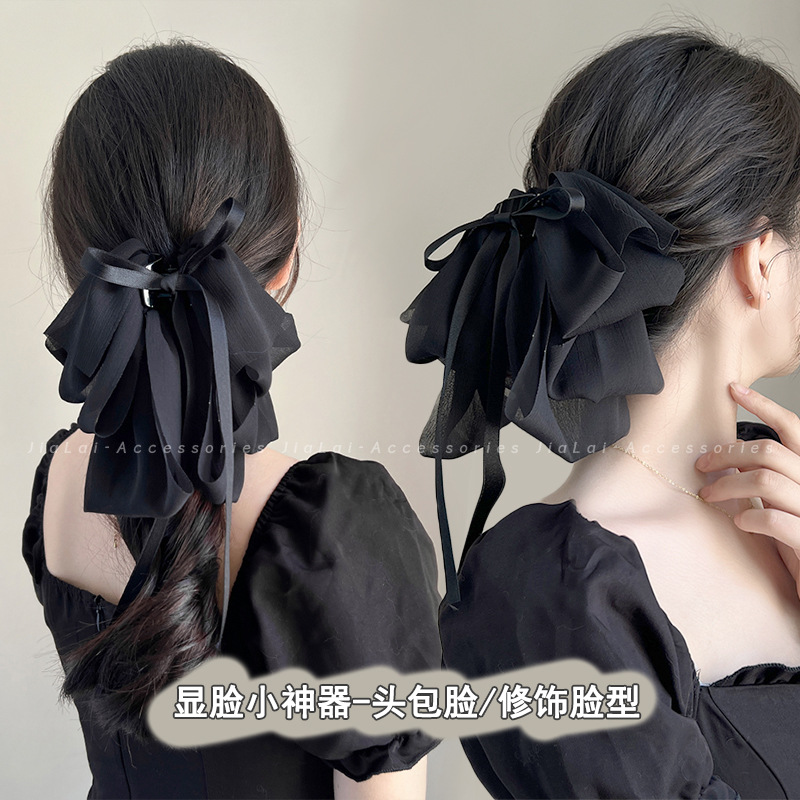 法式温柔显脸小发夹女后脑勺盘发抓夹高端雪纺纱蝴蝶结马尾夹发饰