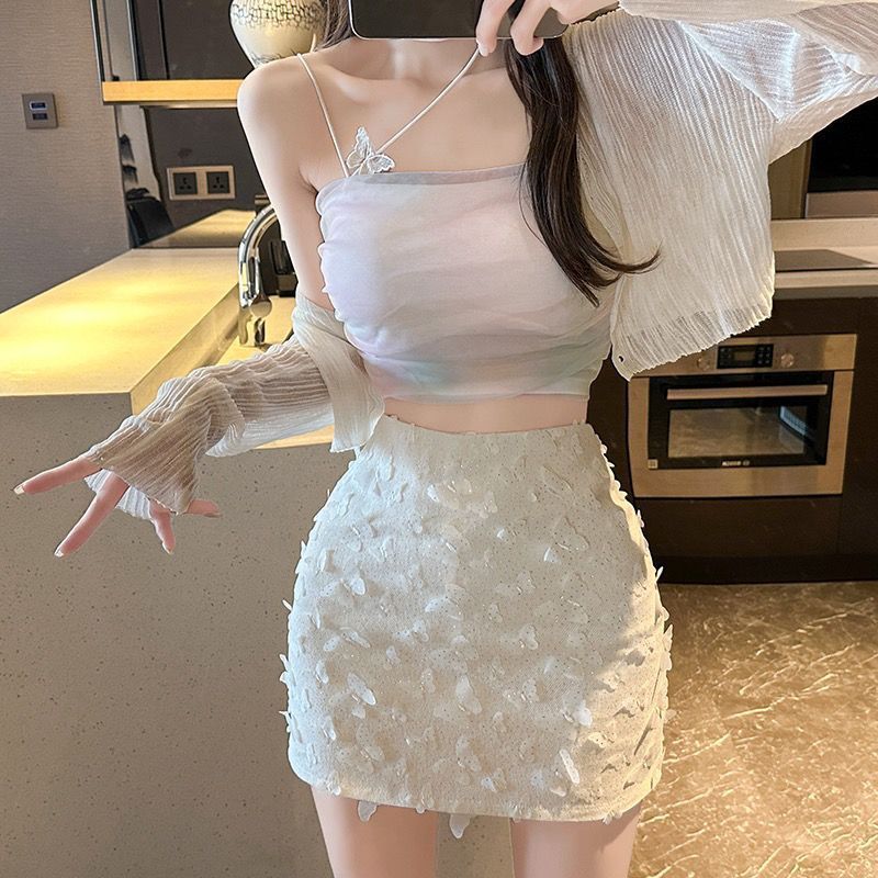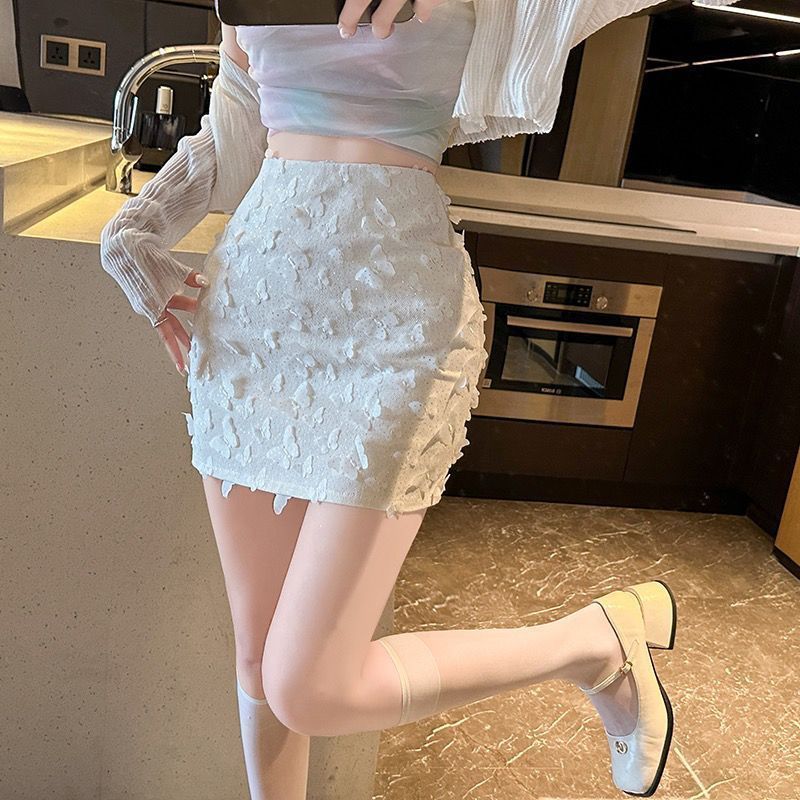 夏季A字裙设计感小众半身裙高级感白色修身辣妹高腰显瘦包臀短裙