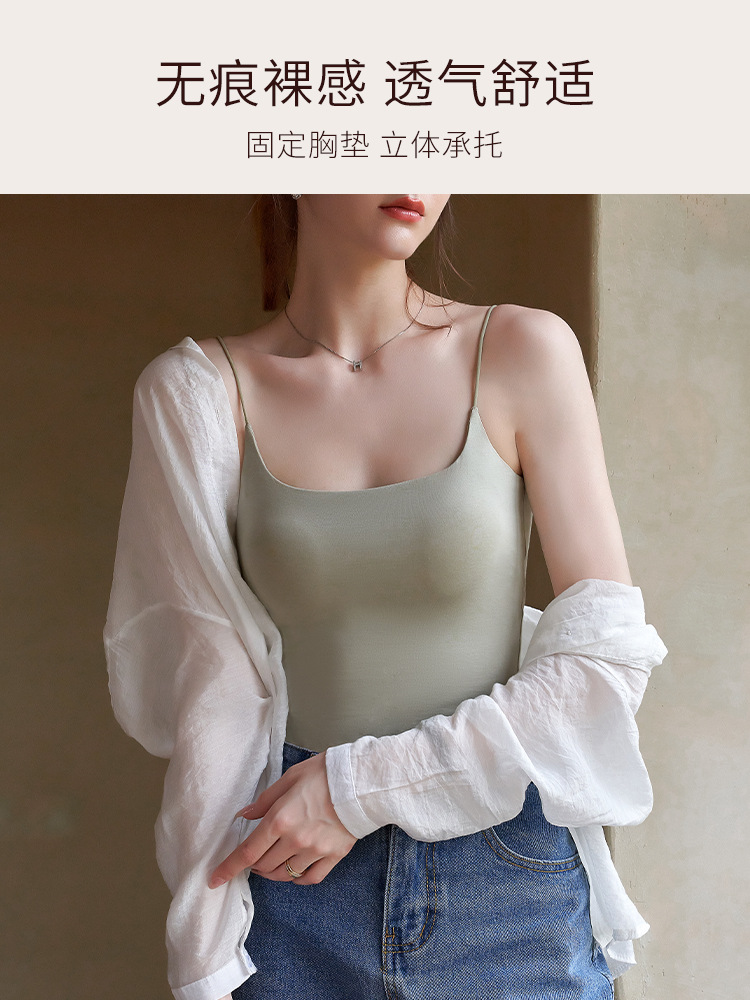 细肩带吊带背心女内搭带胸垫一体式文胸内衣夏季薄款打底外穿抹胸