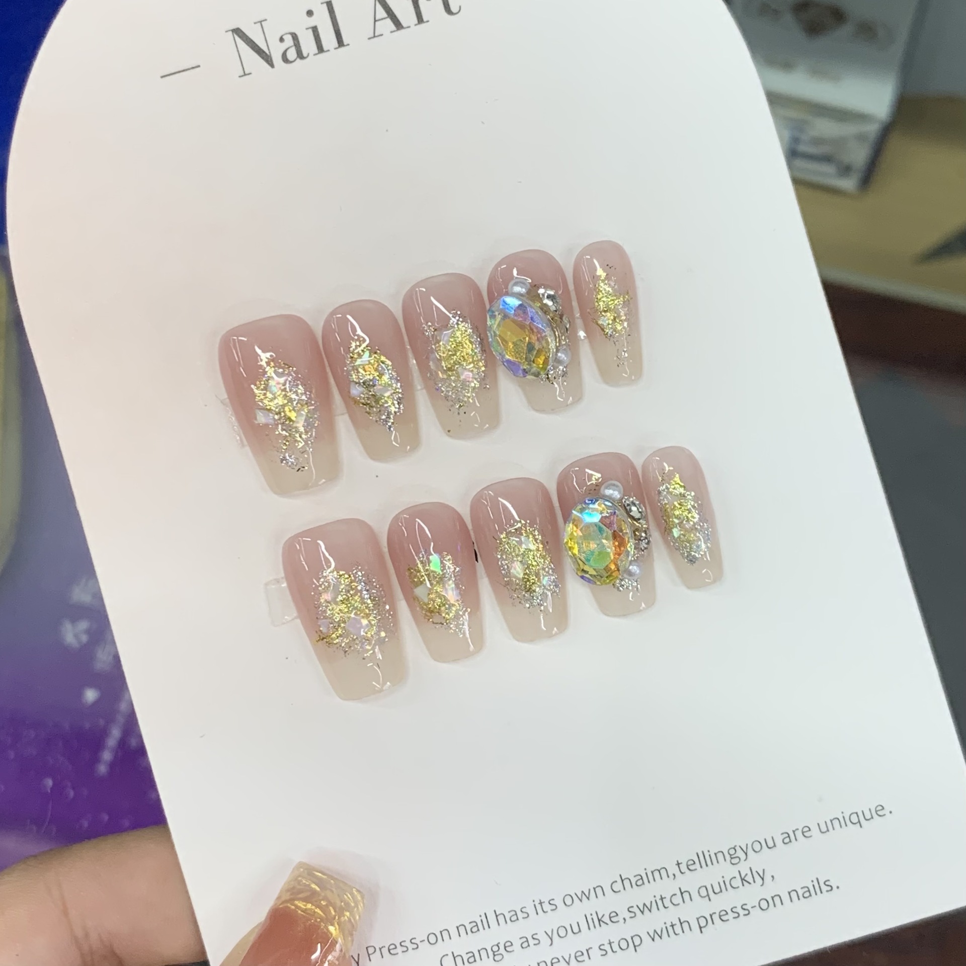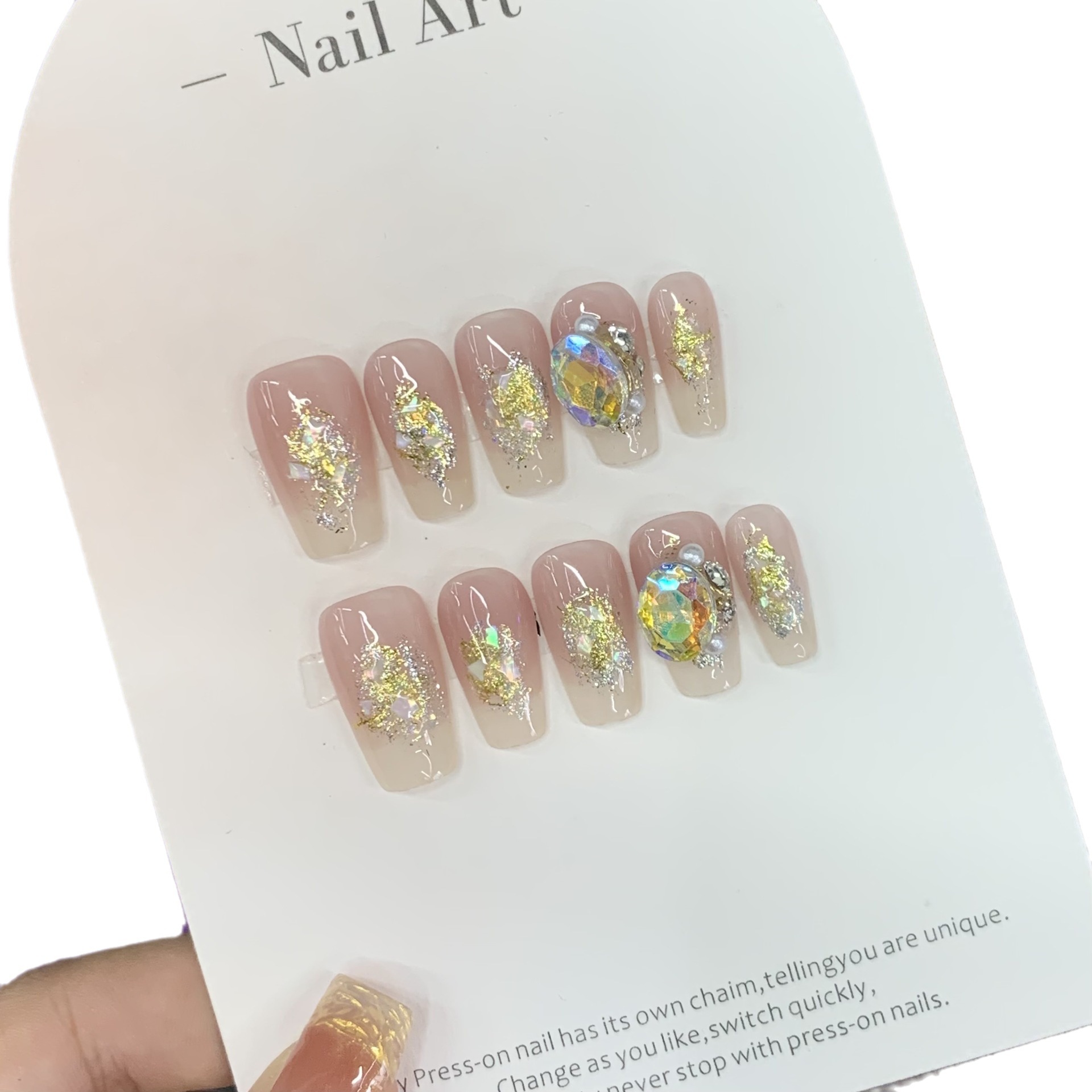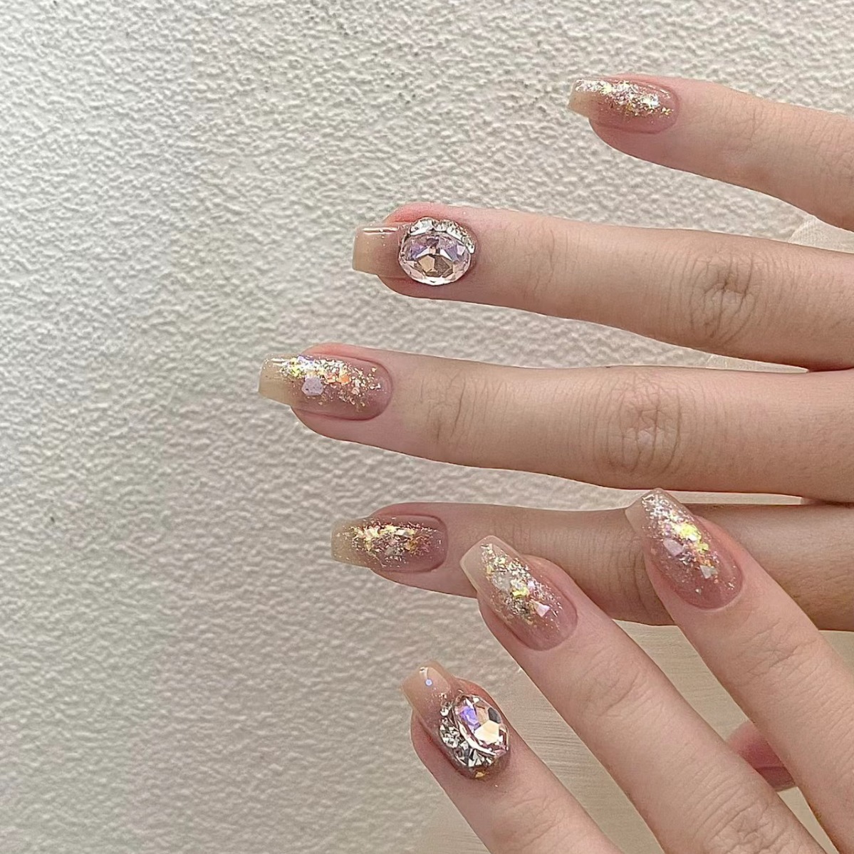 琉璃堆钻法式高级美甲穿戴甲纯欲款假指甲果冻胶美甲贴片成品