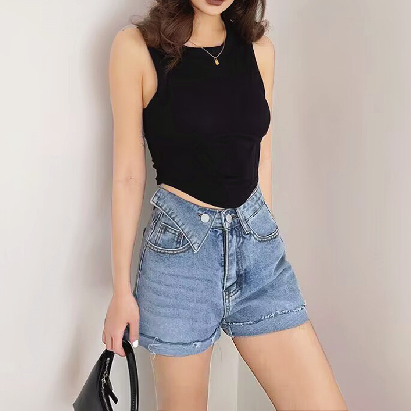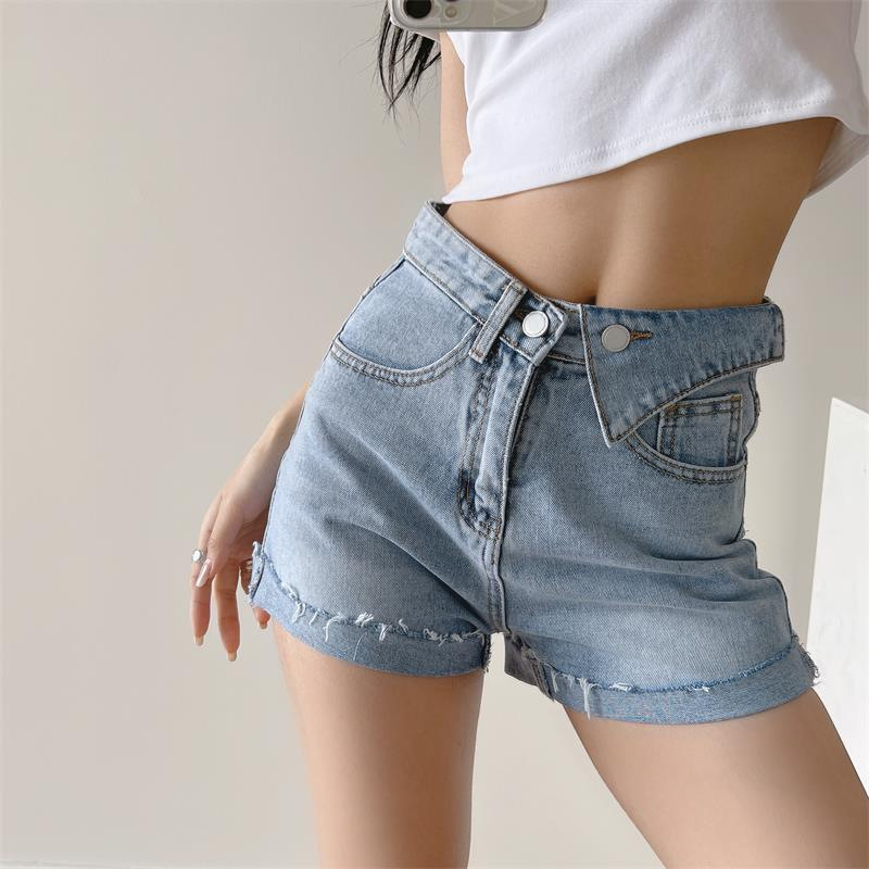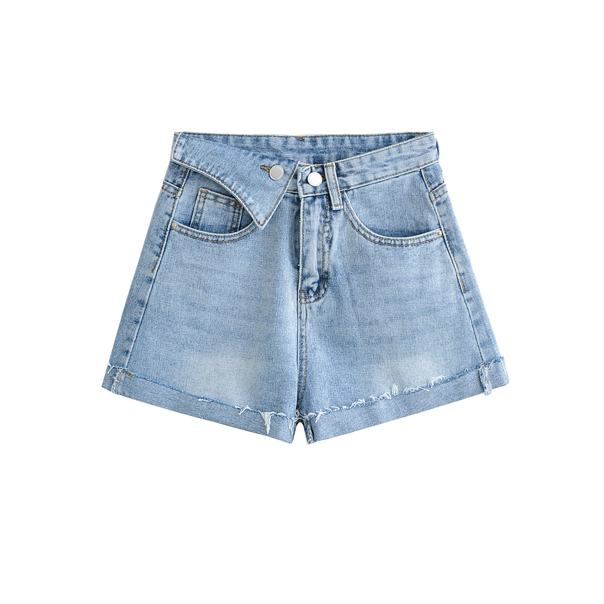 韩版新款设计感浅蓝色牛仔短裤女夏小个子百搭休闲高腰显瘦阔腿裤