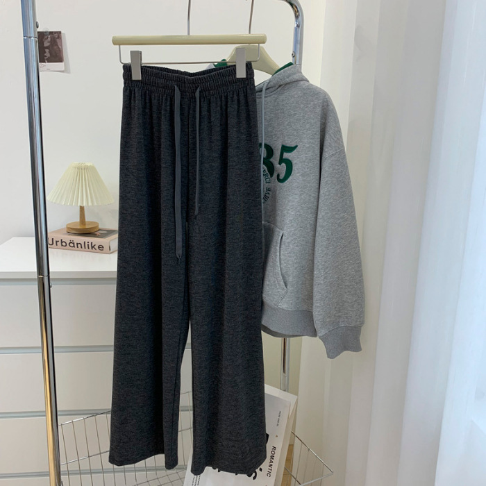 春秋韩版新款阔腿裤女秋高腰垂感宽松直筒休闲百搭运动拖地裤