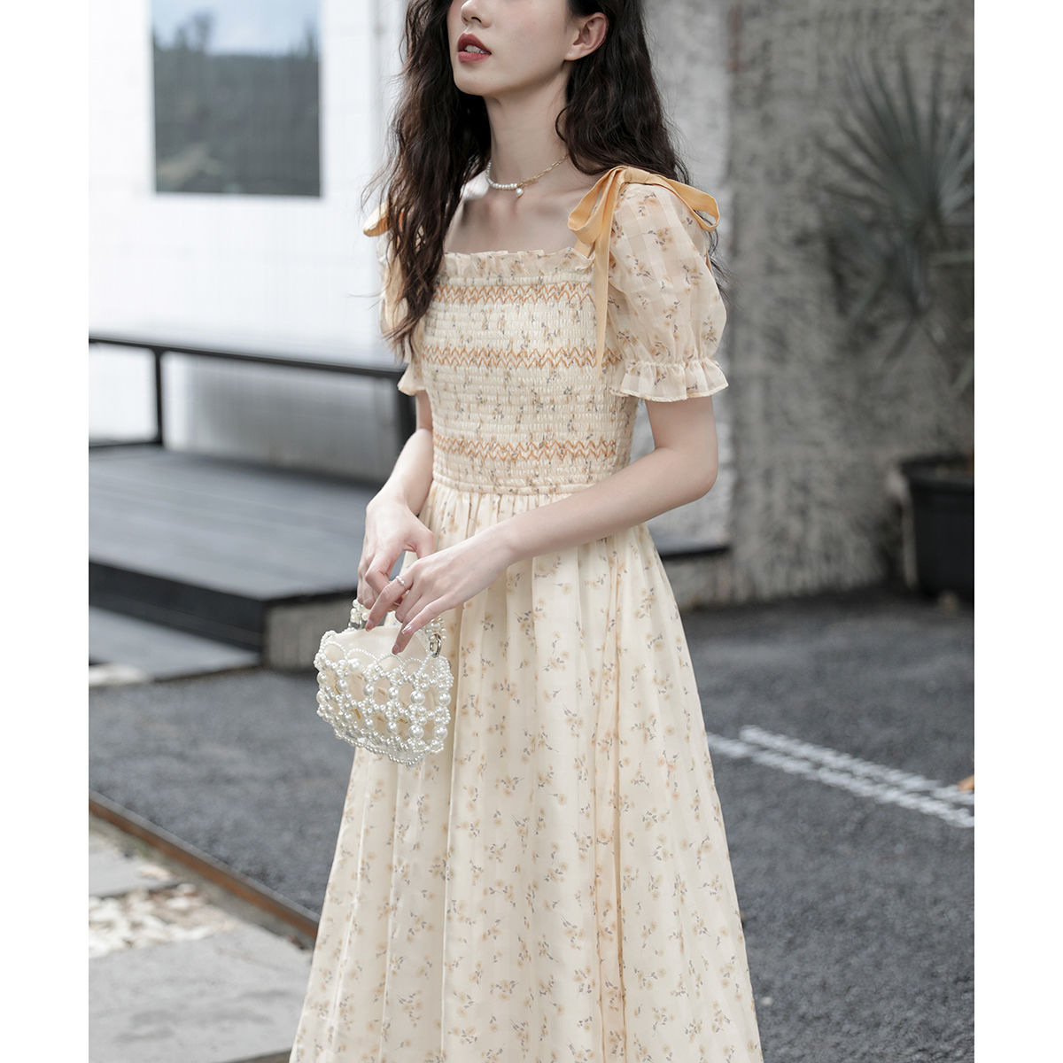 法式温柔仙女甜美气质显瘦连衣裙女夏季设计感小众森系碎花A字裙