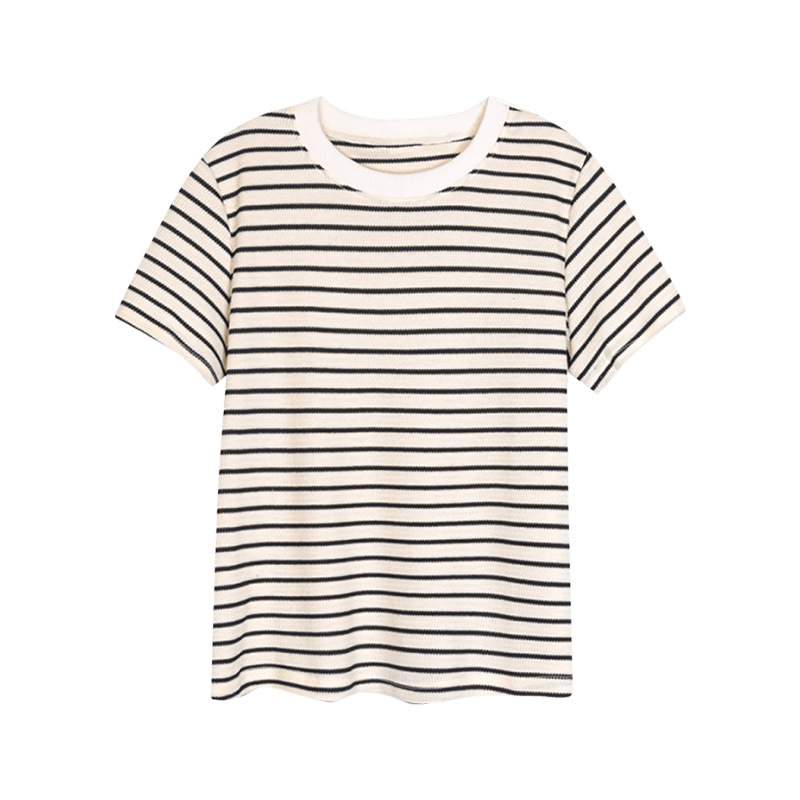 宽松条纹短袖T恤女设计感小众chic港味半袖正肩华夫格纯棉上衣夏