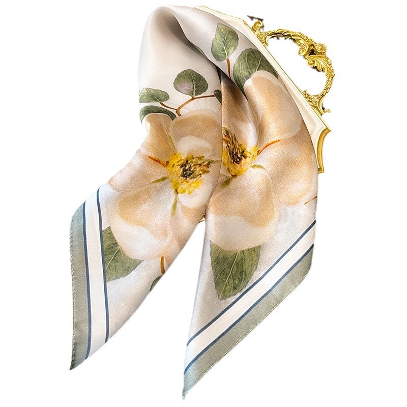 春季优雅木兰花真丝丝巾女新款时尚百搭高档气质桑蚕丝53小丝巾
