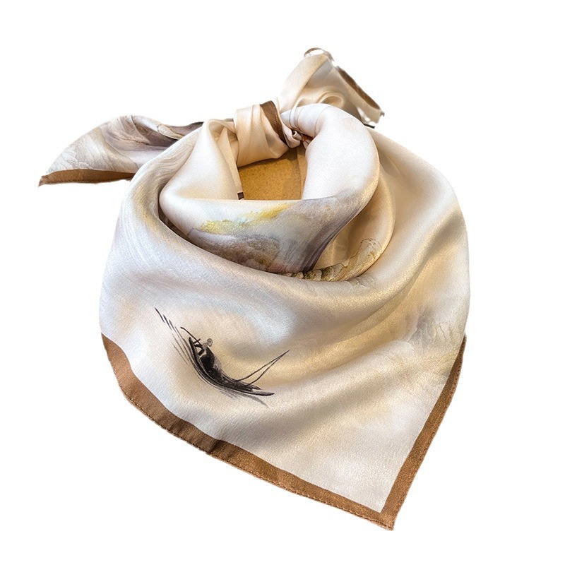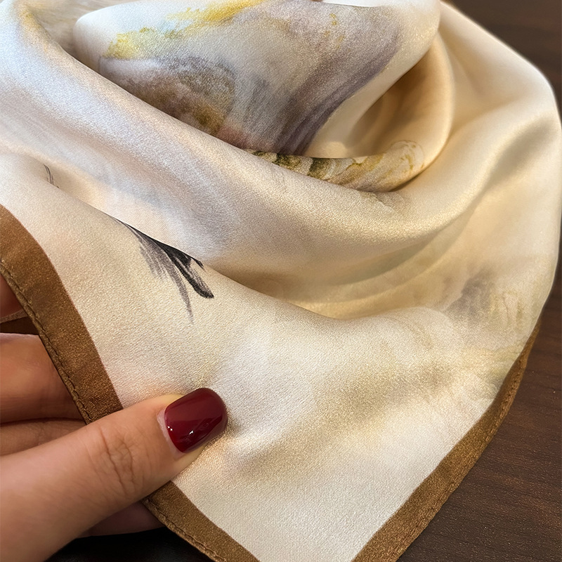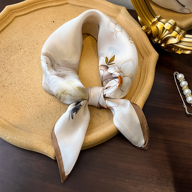 春季新中式优雅真丝丝巾女新款时尚轻奢素绉缎方巾100%桑蚕丝丝巾