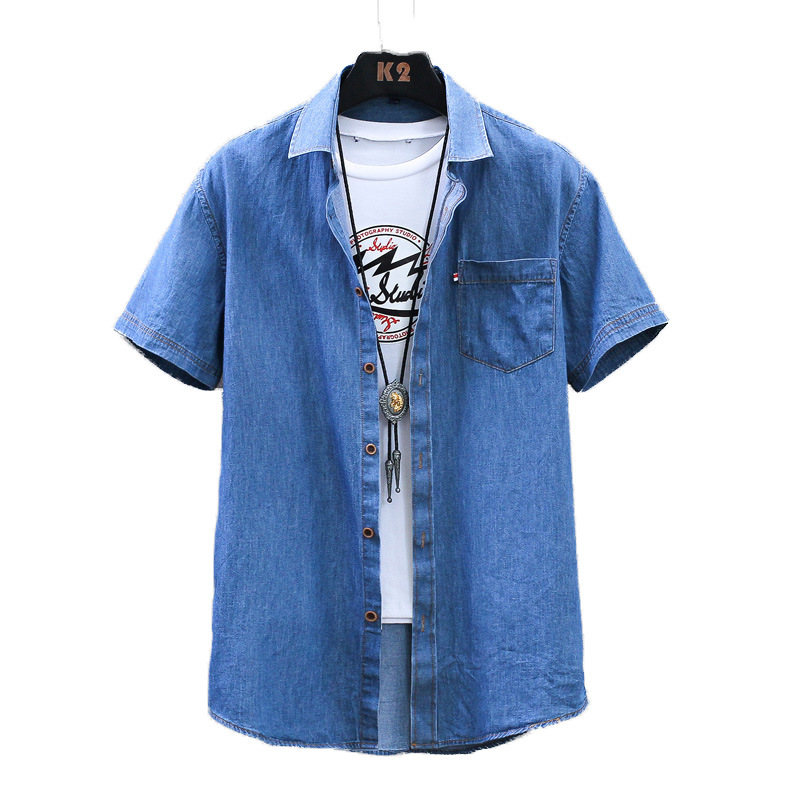 牛仔短袖衬衫男士夏季薄款纯棉宽松衬衣男款休闲帅气外套百搭开衫