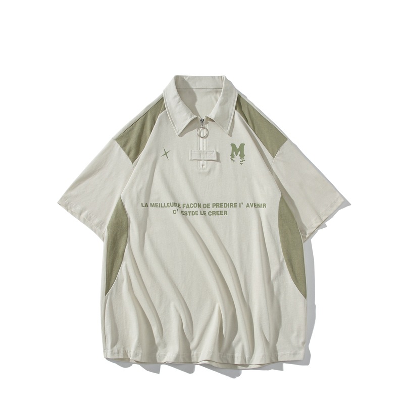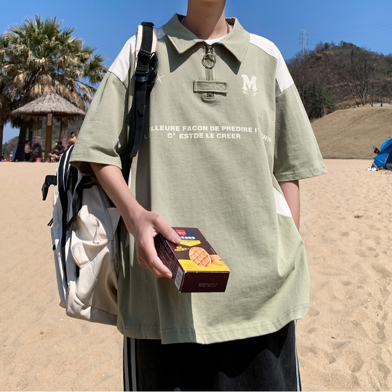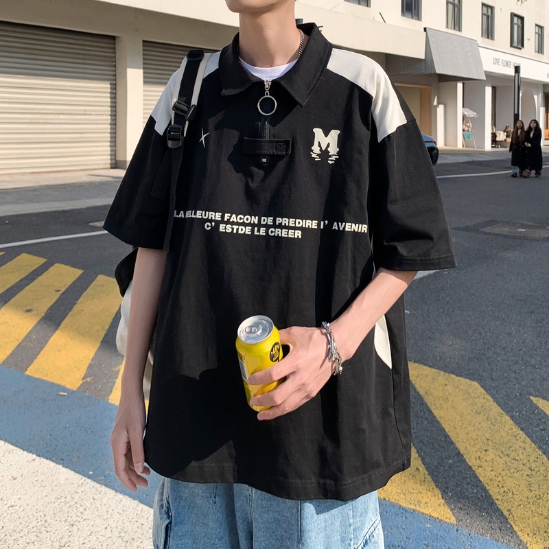 夏季新外景重磅短袖撞色港风大码短袖T恤男士拼接POLO衫休闲t