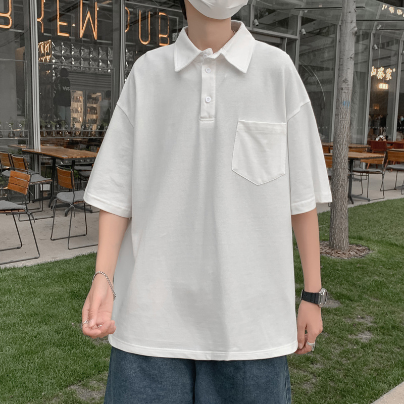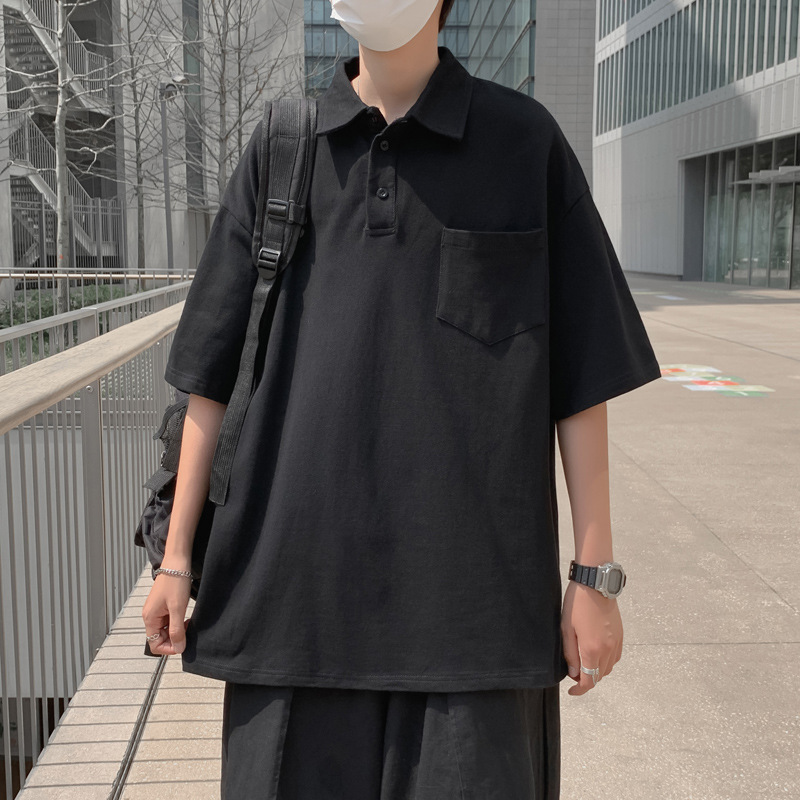 夏季INS港风纯色短袖polo衫男女潮流休闲打底情侣翻领体恤衫上衣