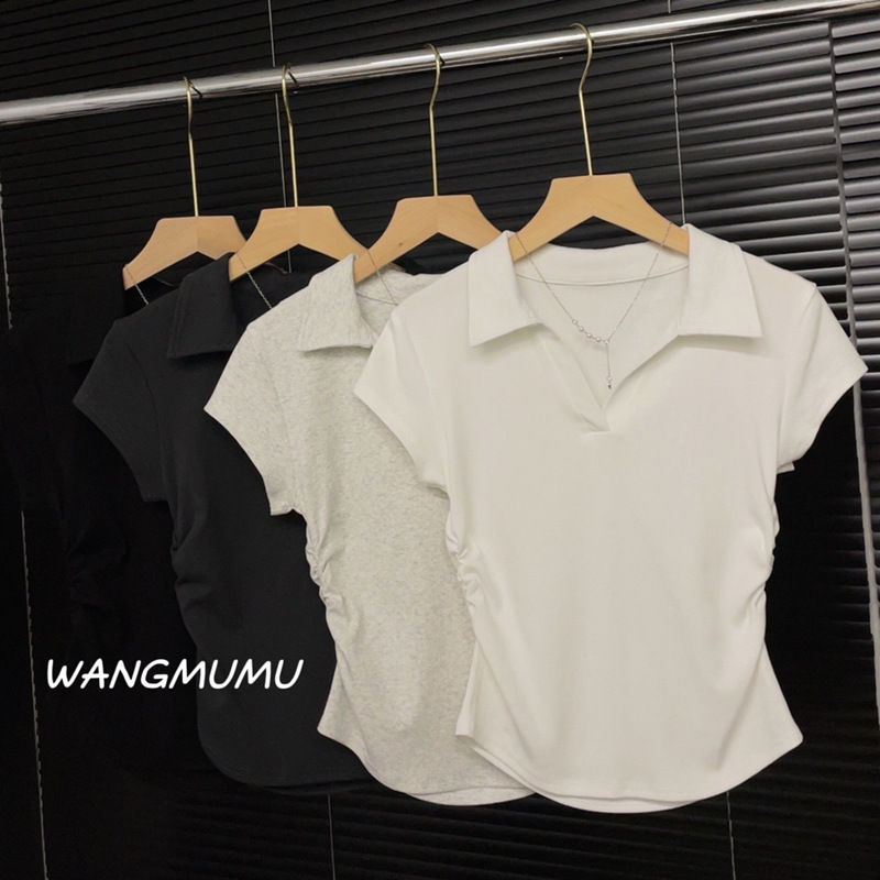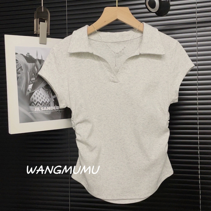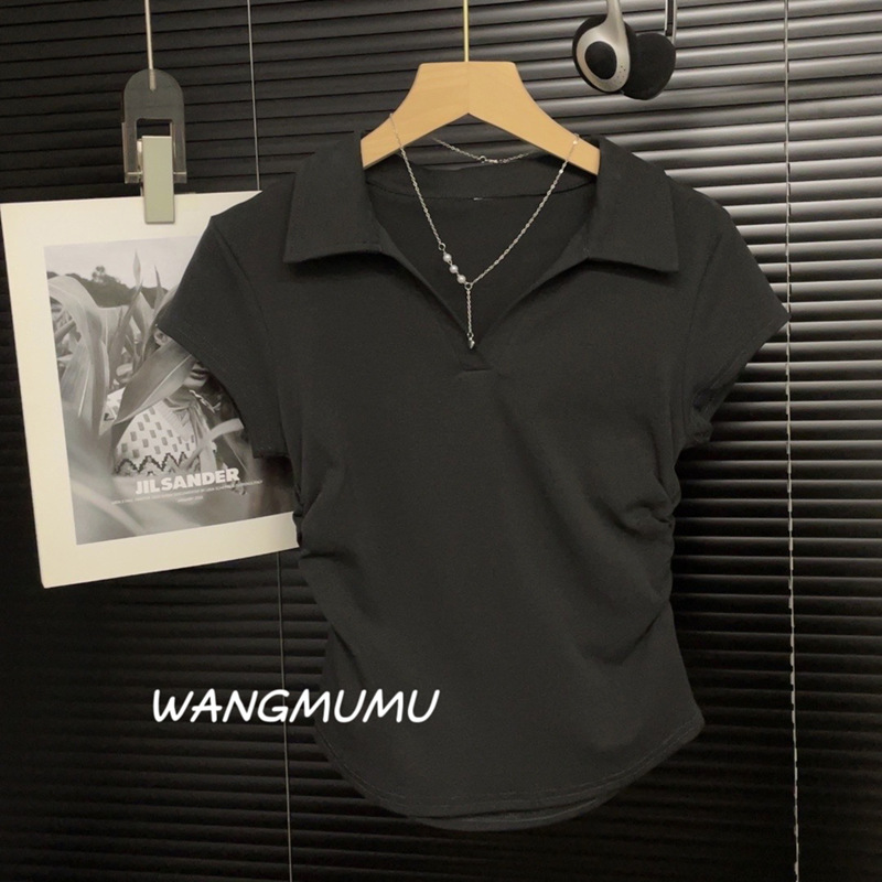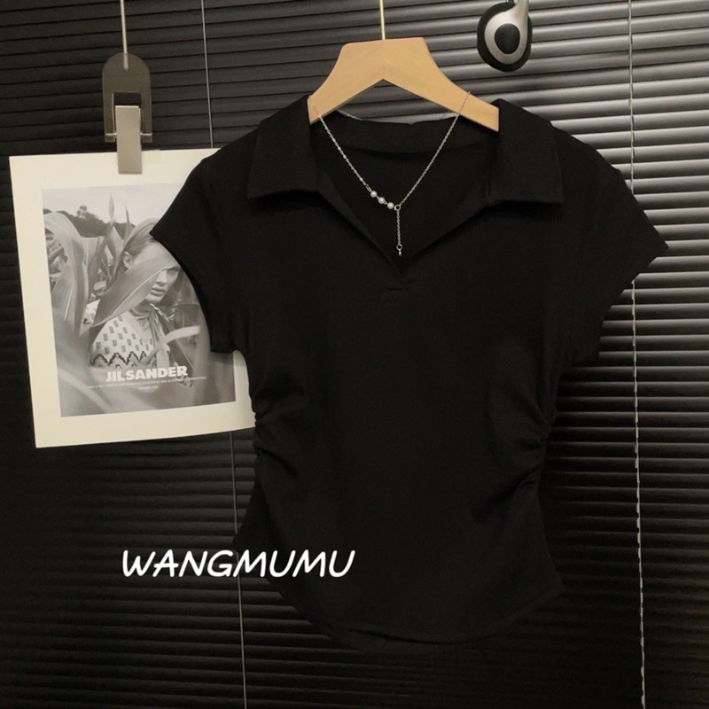 纯色基础款polo领短袖T恤女夏季新款小众收腰设计别致短上衣