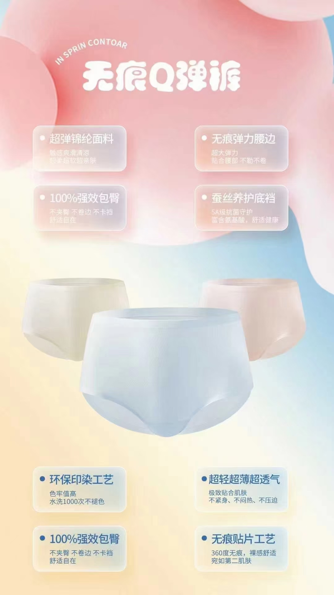 粉都Q弹内裤透气蚕丝裆抗菌婚纱照三角裤一盒/6条