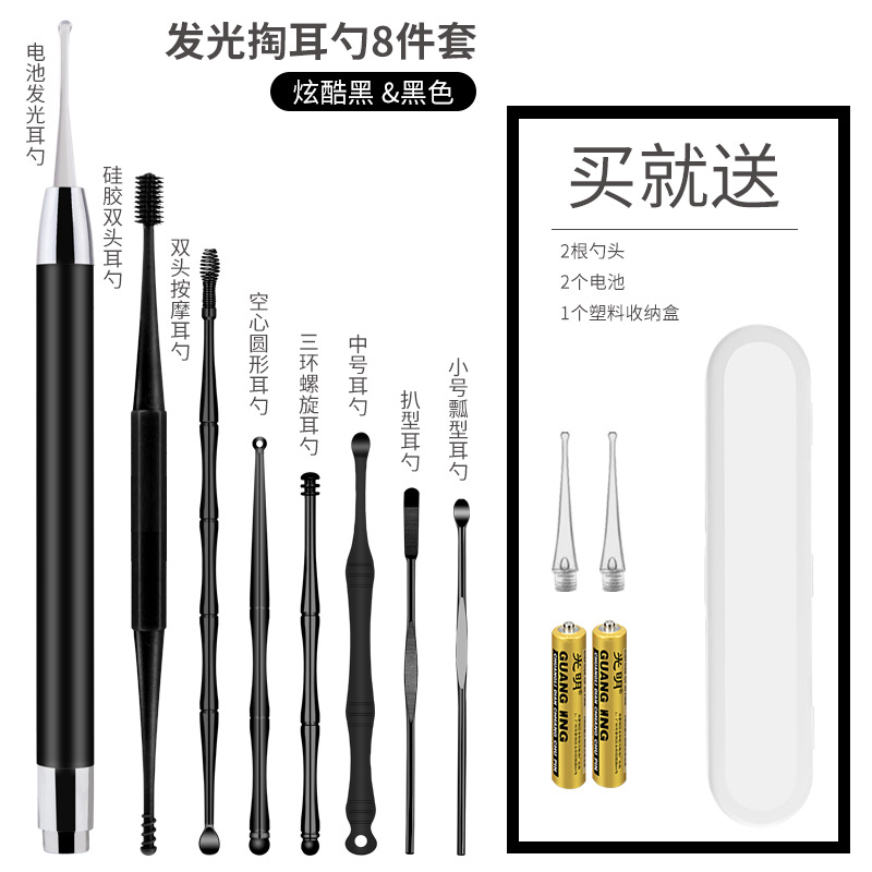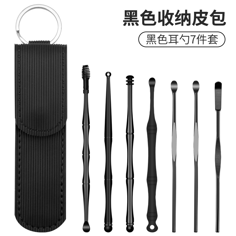 炫酷黑家庭装舒适掏耳8件套收纳盒
