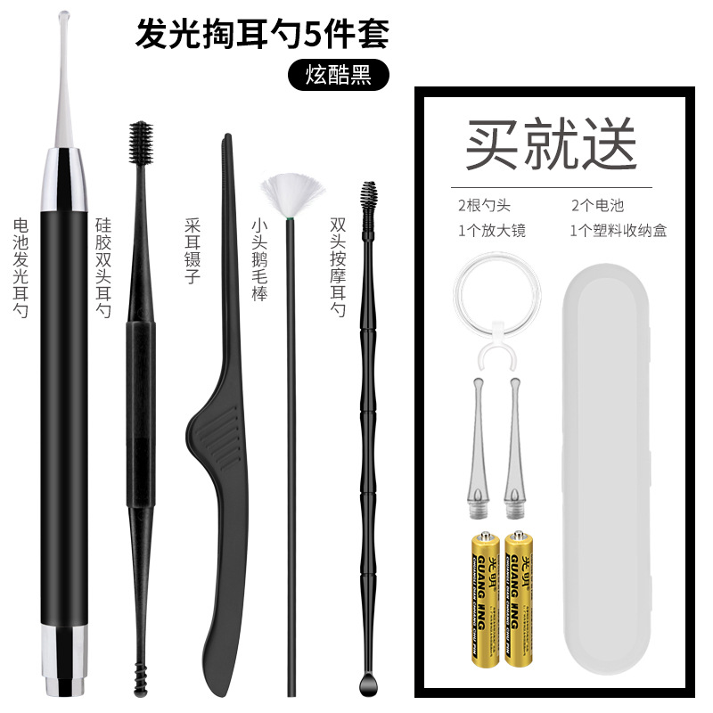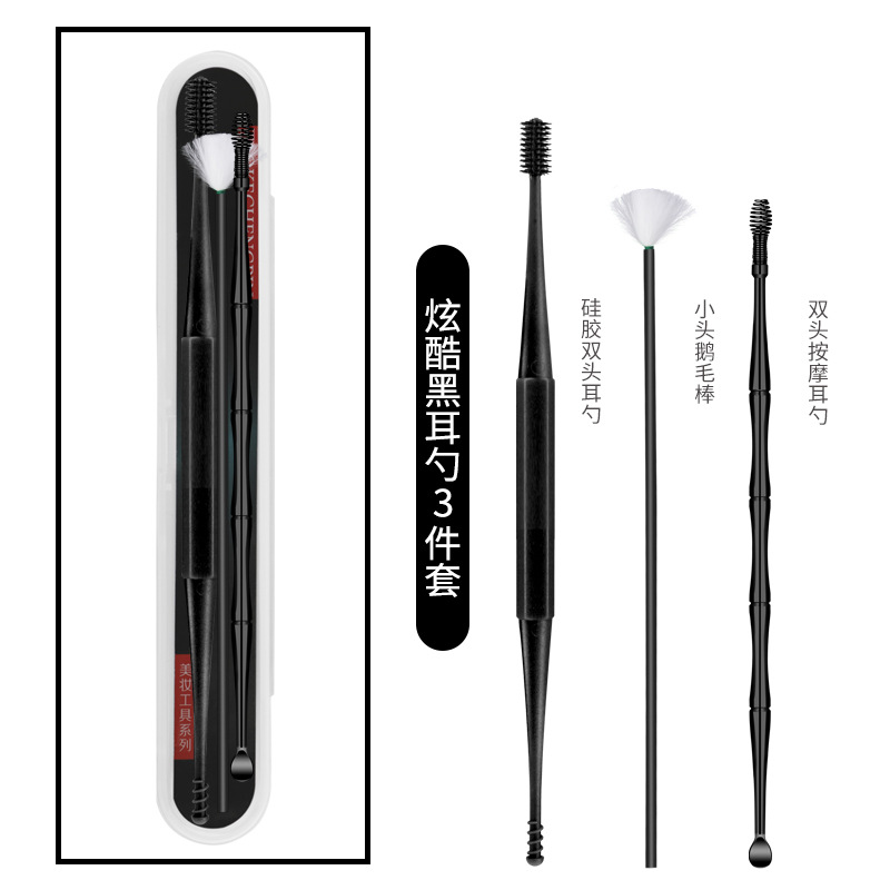 炫酷黑家庭装舒适掏耳5件套收纳盒