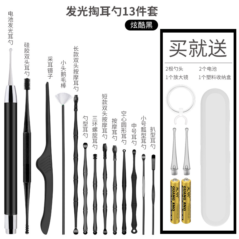 炫酷黑家庭装舒适掏耳13件套收纳盒