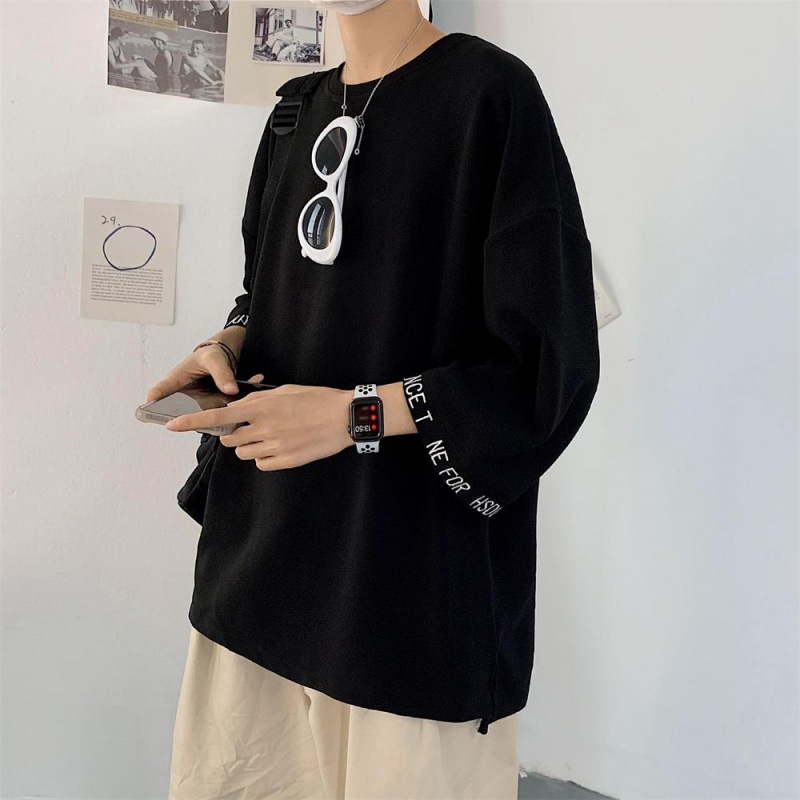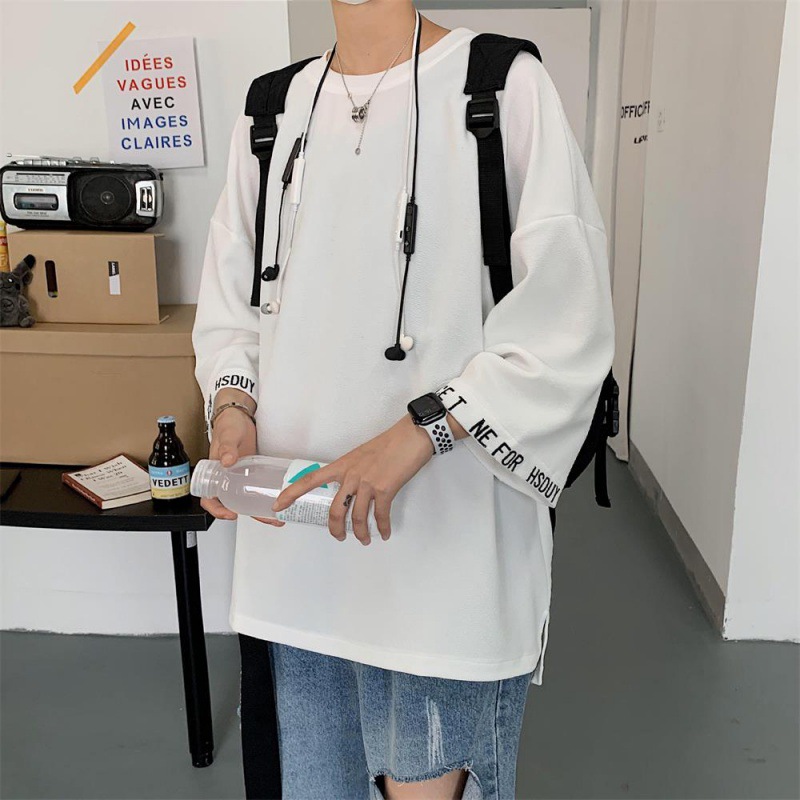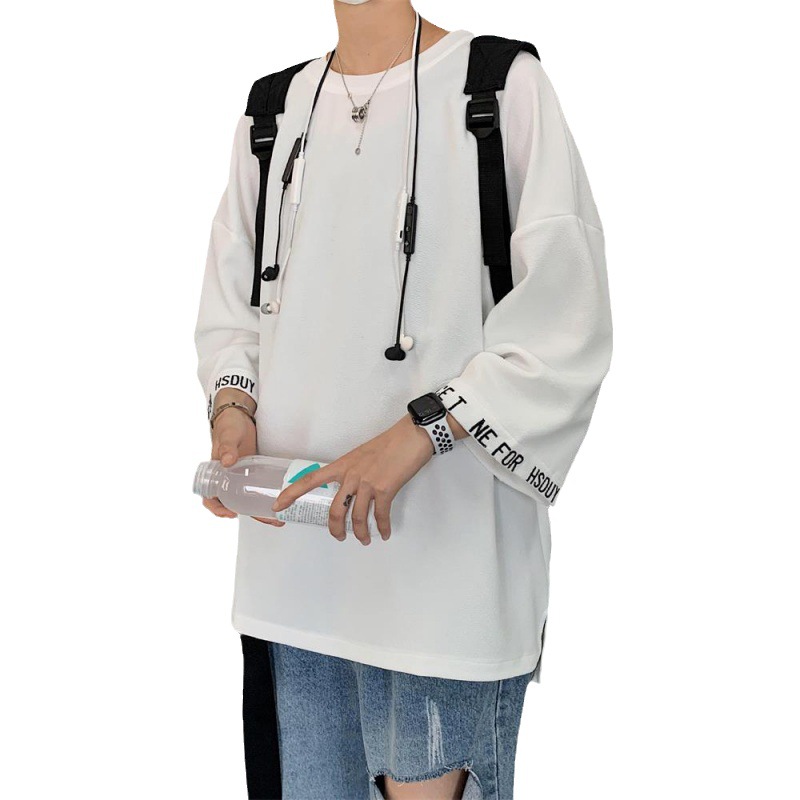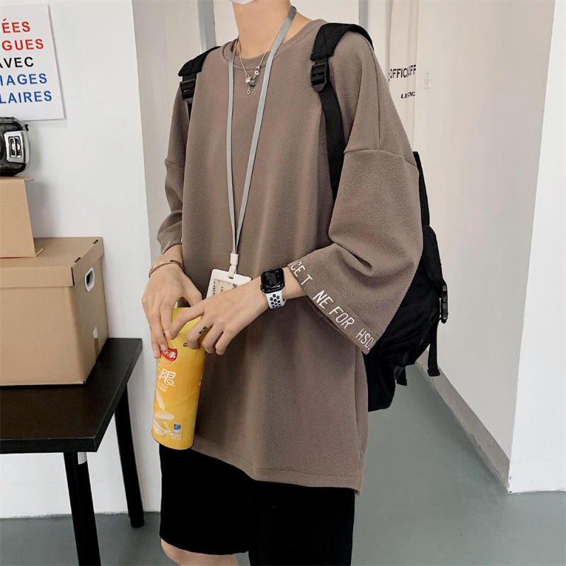 新款七分袖港风大码宽松短袖嘻哈风格T恤浅色清楚气息百搭衬衣