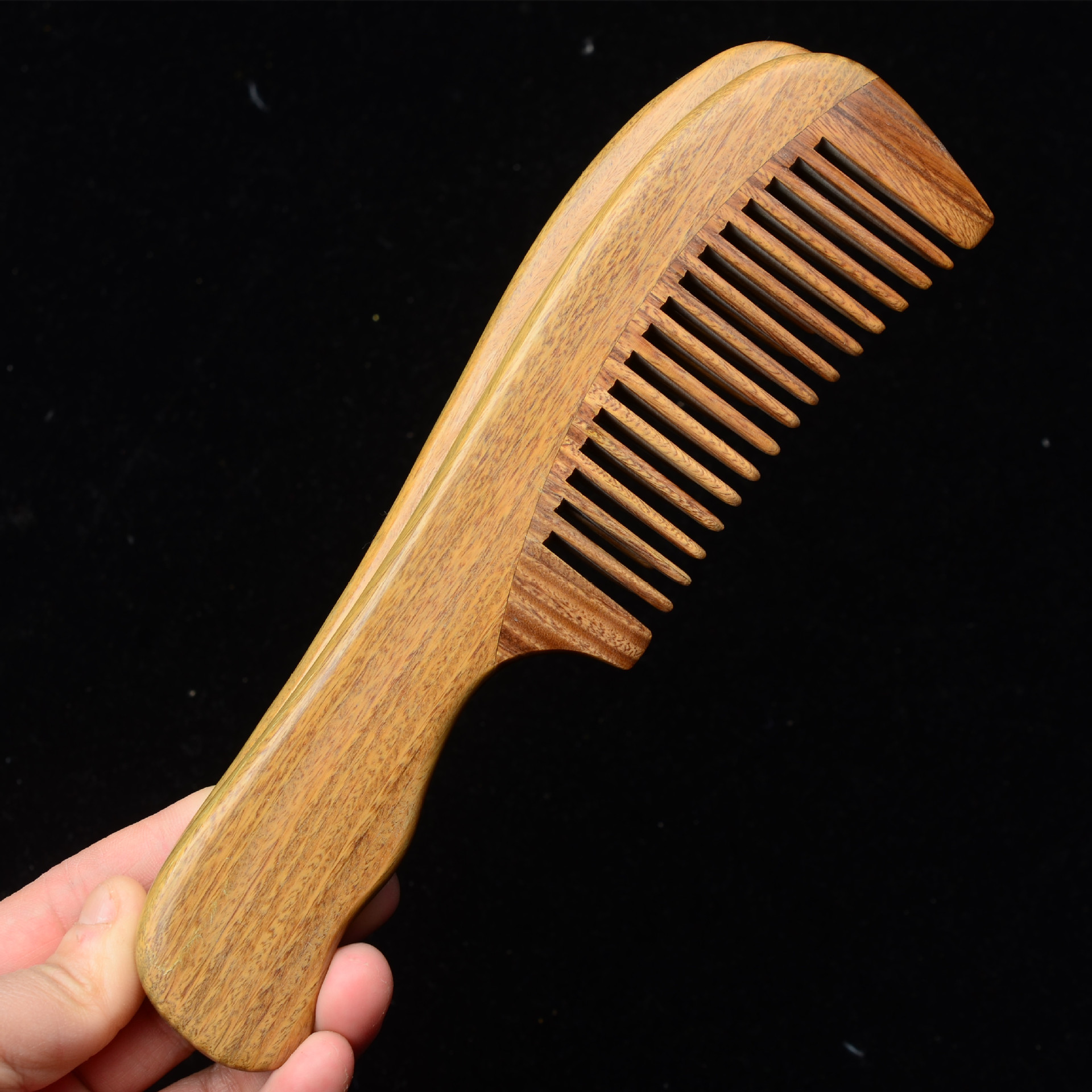 木梳子女家用耐用头部按摩梳手柄刻字宽齿梳卷发梳子绿檀木梳