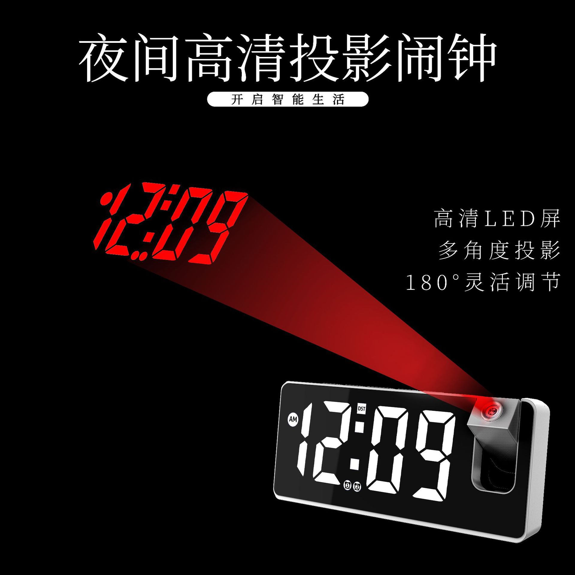 投影声控闹钟创意多功能USB充电大屏智能数显简约LED时钟