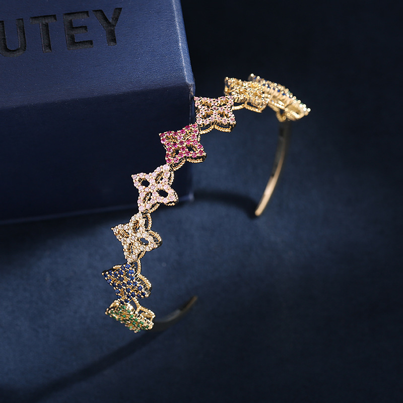 夏季新款手饰个性简约开口锆石镶嵌手环四叶花朵幸运草手镯