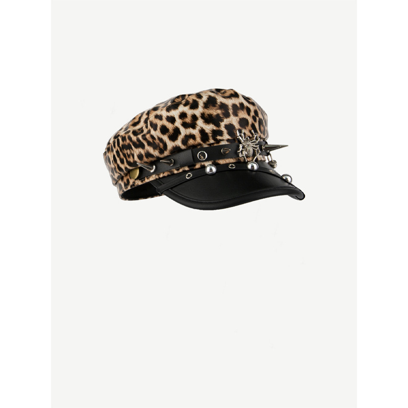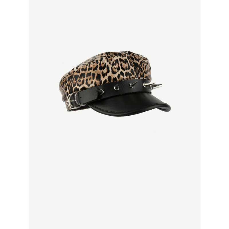涩谷辣妹铆钉皮扣复古皮质报童帽亚文化时髦街头百搭画家帽鸭舌帽