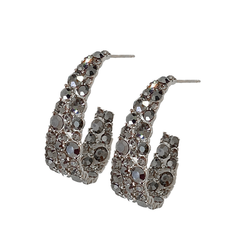 新款c型925银针水滴水钻耳环复古高级感轻奢方块耳钉简约耳饰品女
