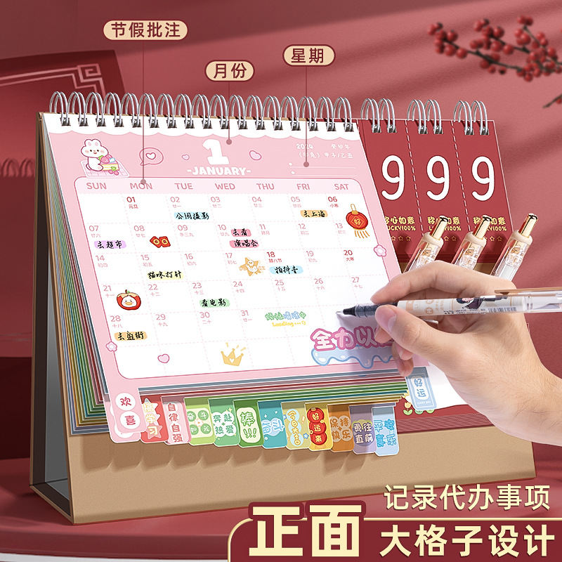 年新台历创意国风版文艺倒计时记事本月历办公室桌面小摆件款