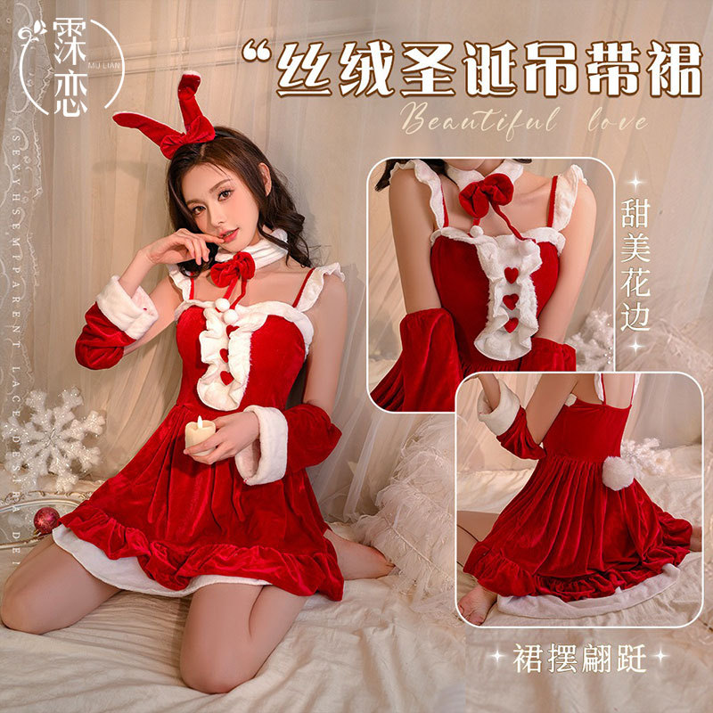 情趣内衣丝绒圣诞节 cos兔女郎制服吊带连衣裙女床上睡袍套装