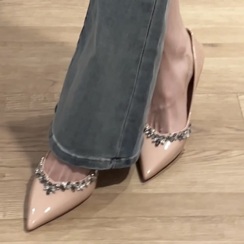 年新款春秋水钻花裸色高跟鞋尖头御姐性感细跟法式绝美单鞋女
