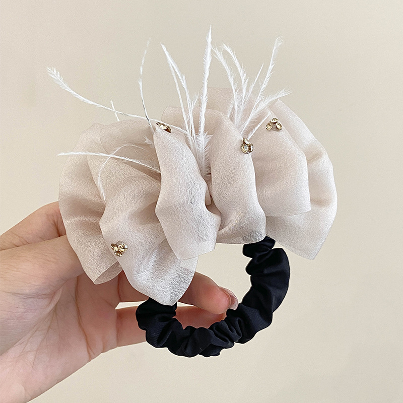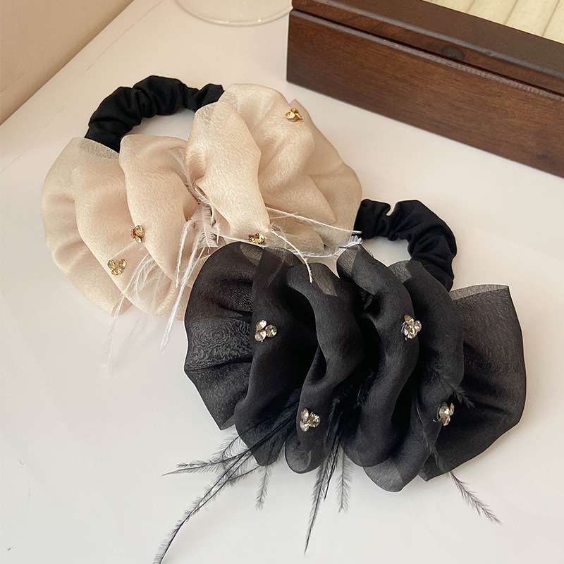 新款头饰满天星羽毛泡泡纱蝴蝶结肠圈马尾发圈丸子头盘发发绳