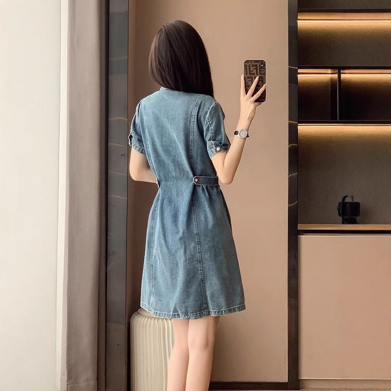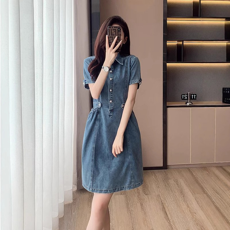 欧货高级感复古港风休闲中长款减龄牛仔连衣裙女夏装气质长裙