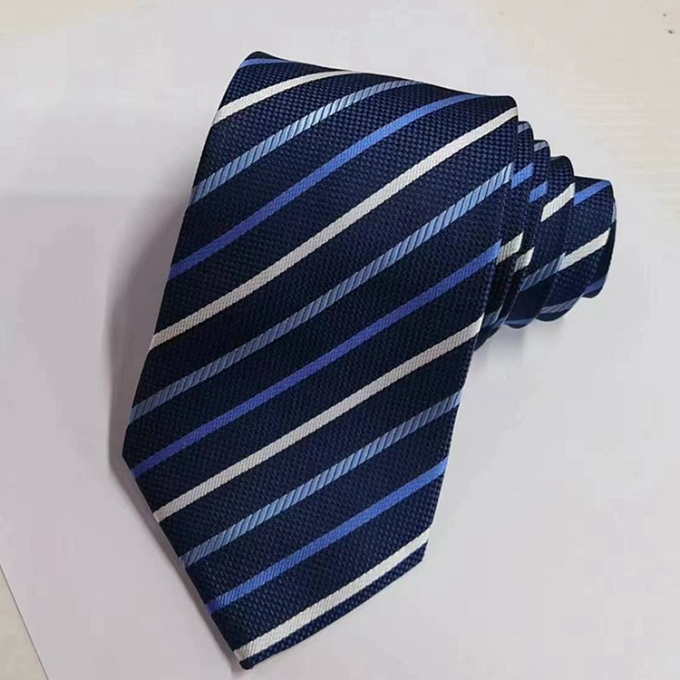 正装商务男士领带8cm 涤纶丝条纹黑色领带提花色织手打款