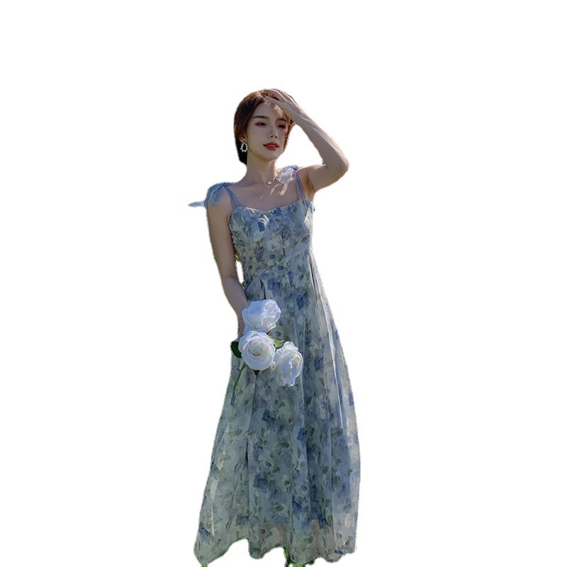茶歇法式小众吊带连衣裙油画风仙气超仙森系初恋收腰裙子别致长裙