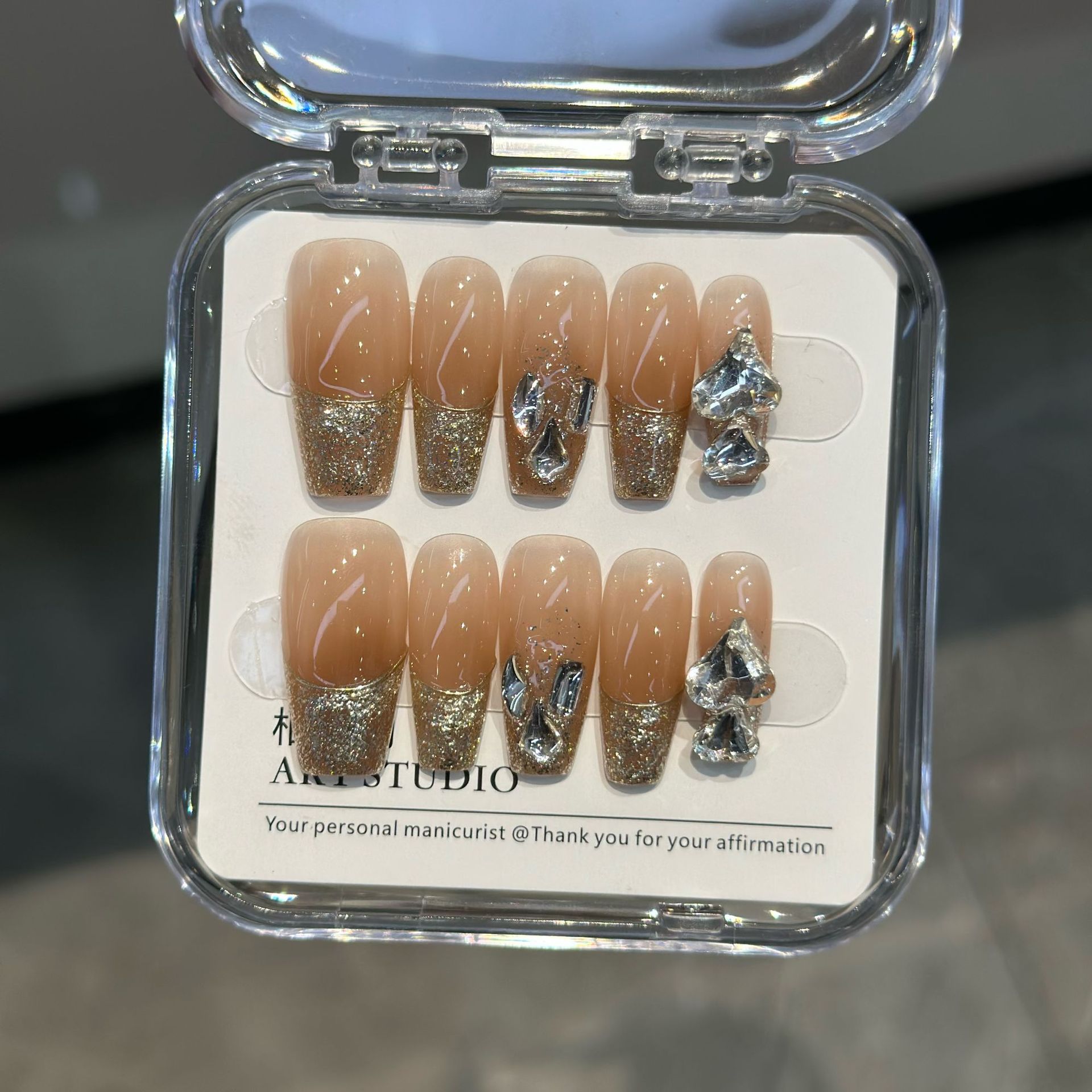 87纸醉金迷爆闪碎钻新年战甲贵气手工光疗穿戴美甲成品假指甲贴片