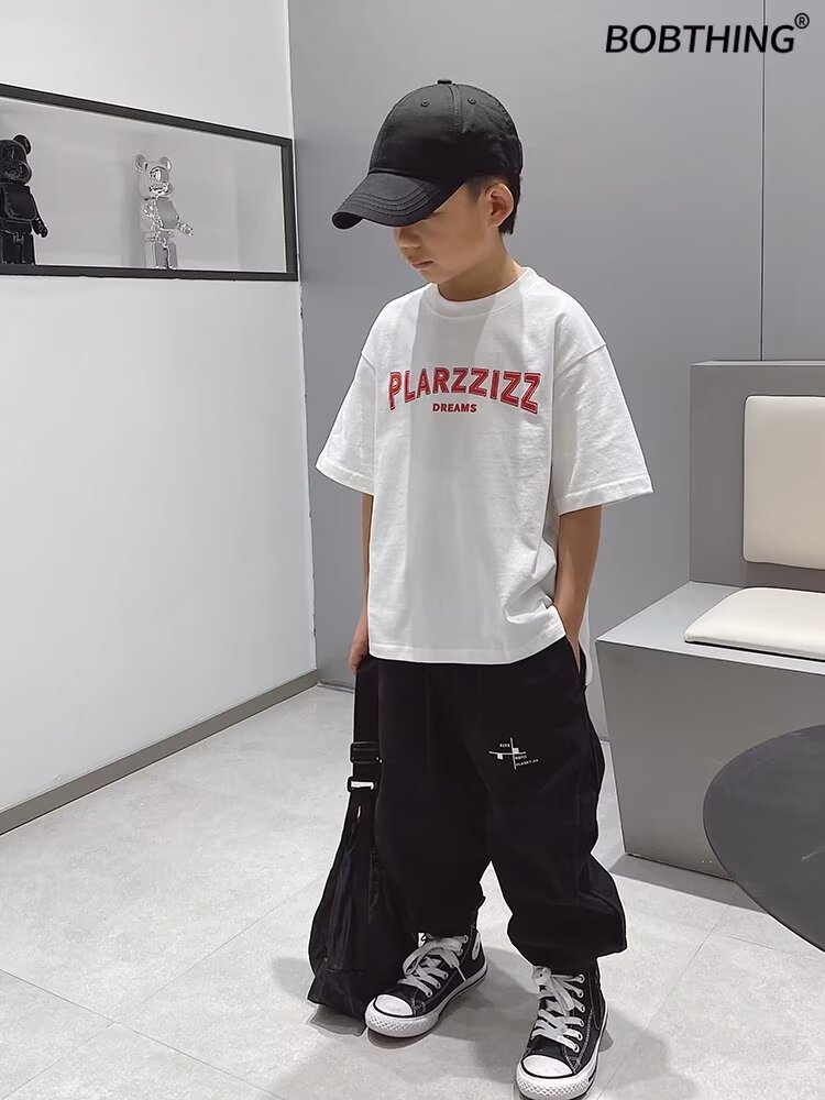 韩版儿童半袖T恤夏季中大童男童简约字母短袖潮童装体恤跨境