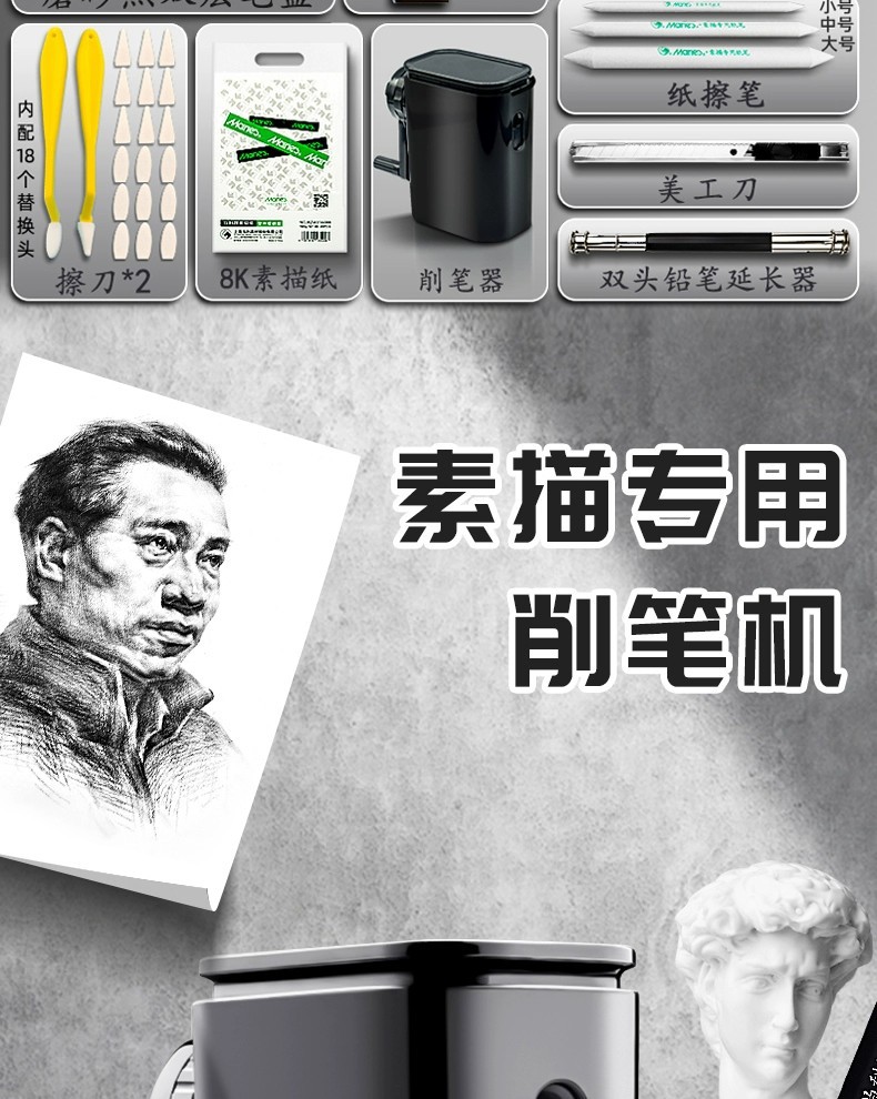 - 马利铅笔素描56件套-手摇画架-实心画板-素描削笔机