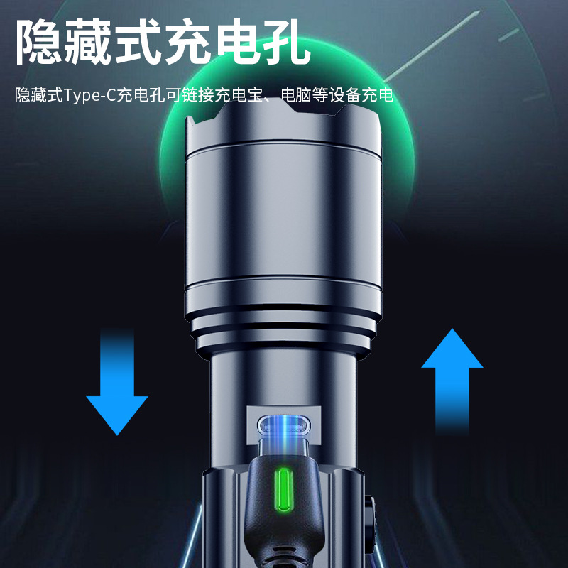 液晶数字电显手电筒隐藏式快充铝合金远射激光炮便携户外照明电筒