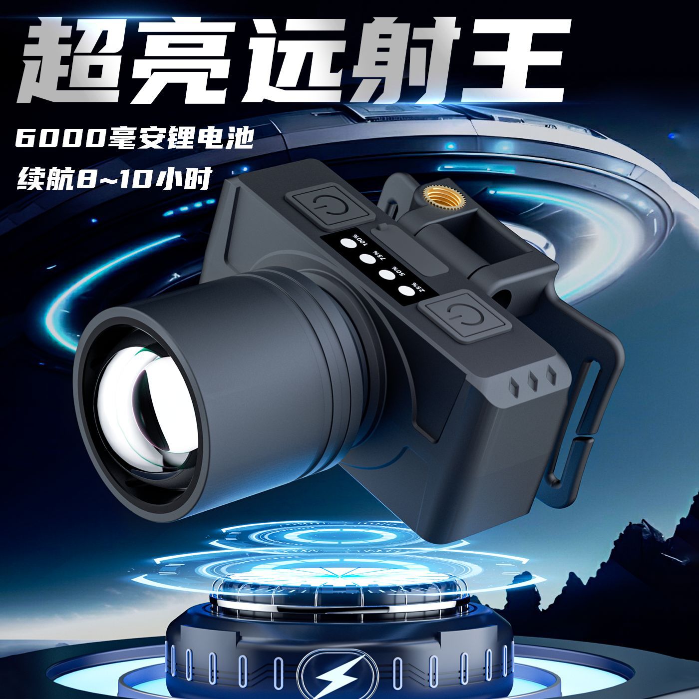 白激光LED头灯可充电户外超亮可调节远近光头戴式手电筒强光