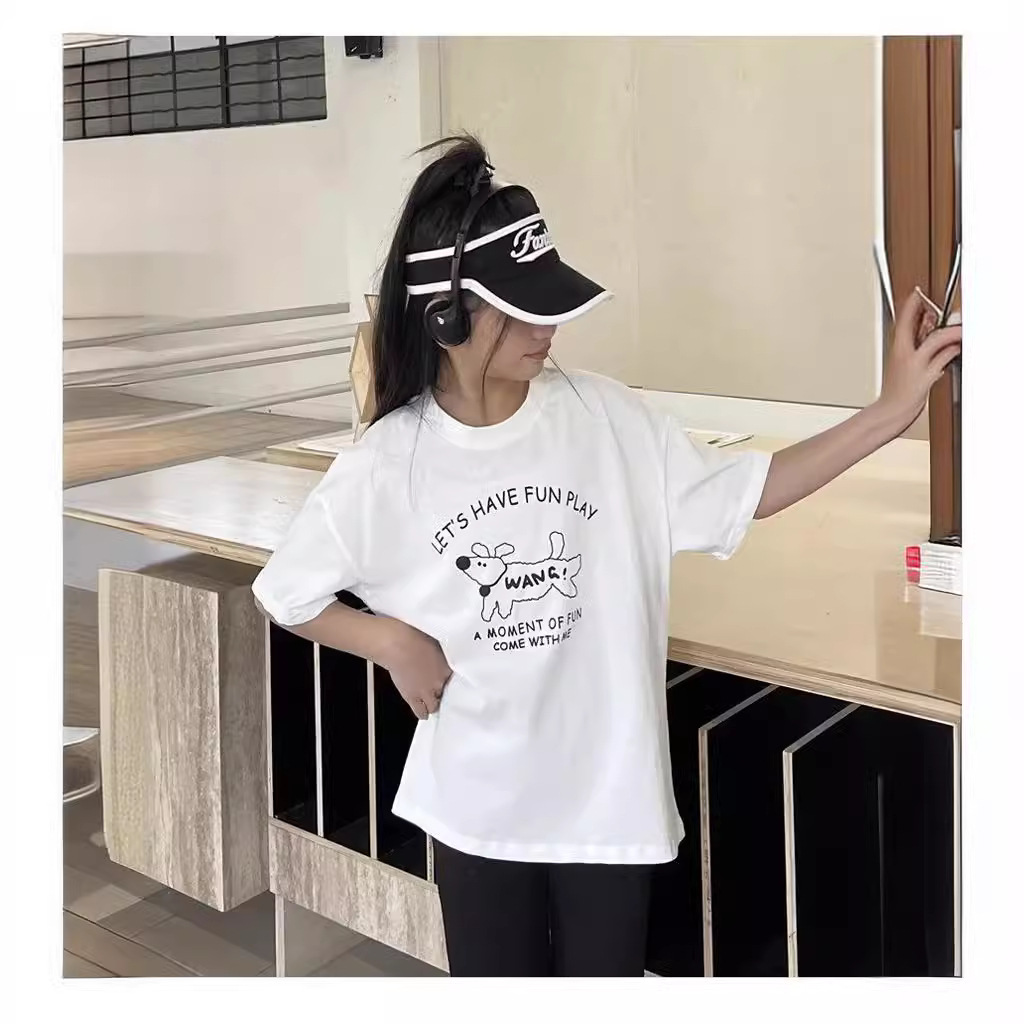 男士夏季短袖新款T恤日常潮流字母印花宽松圆领百搭休闲上衣