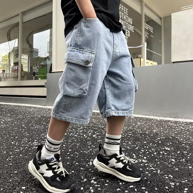 童装牛仔裤五分裤夏季新款休闲宽松潮流学生工装裤男童洋气潮