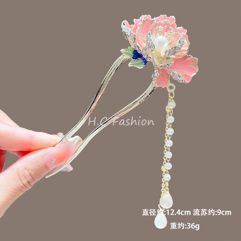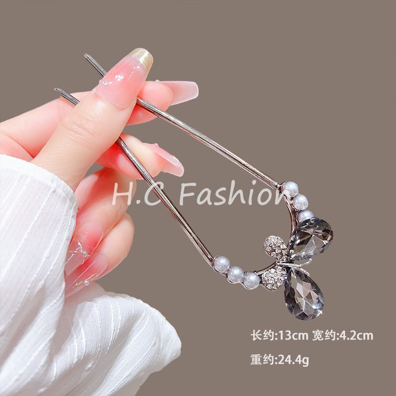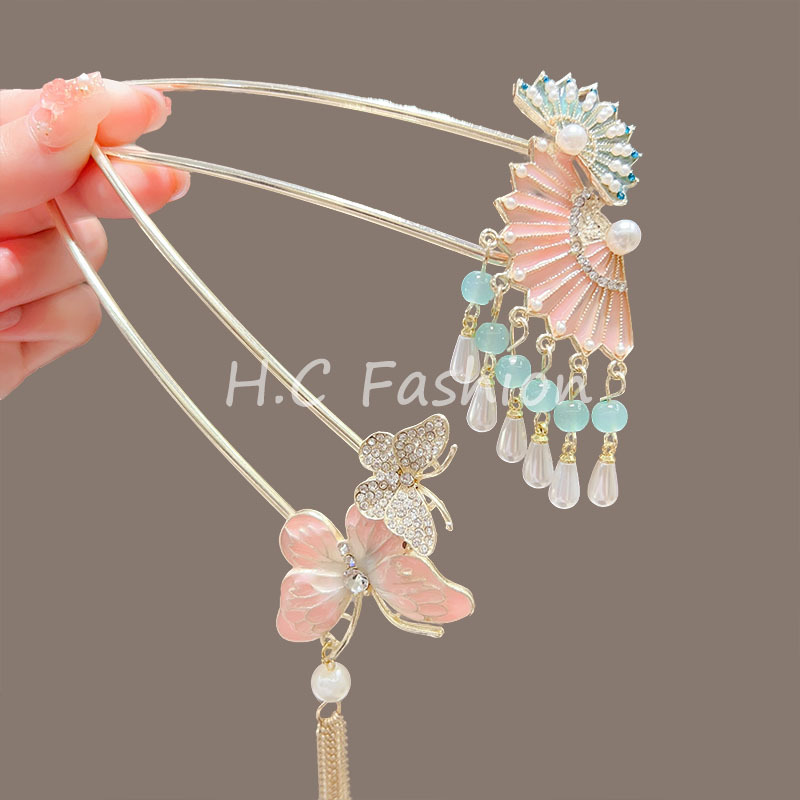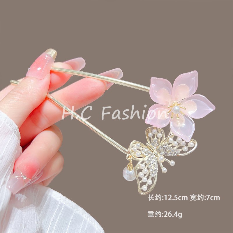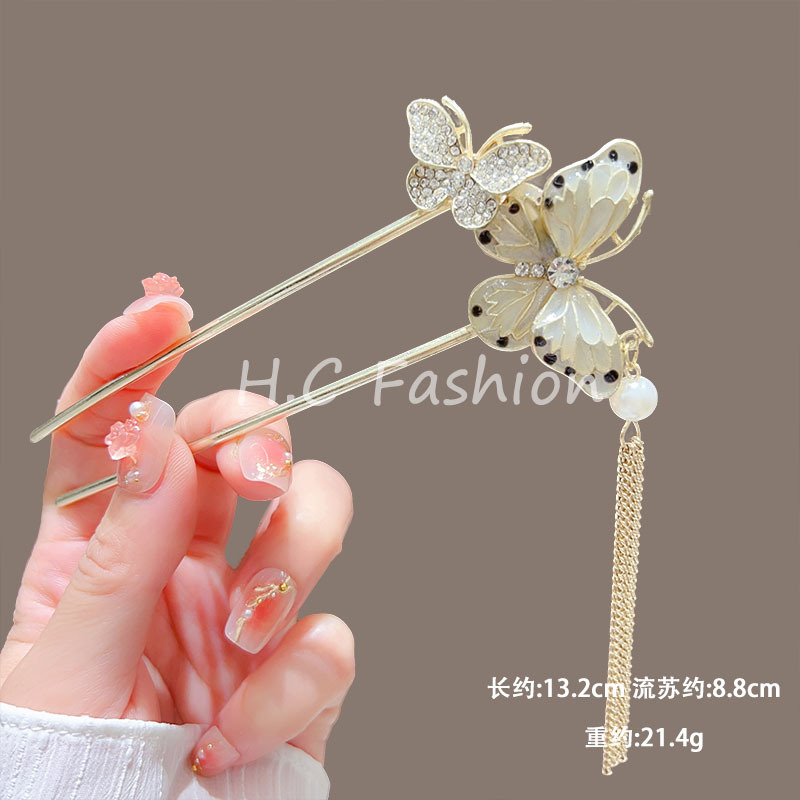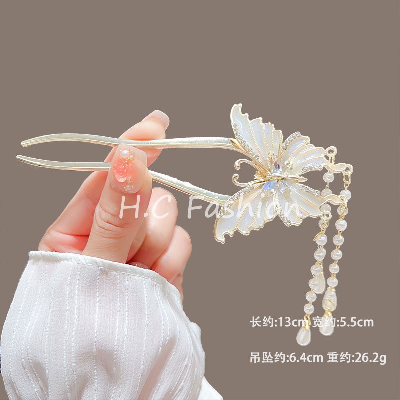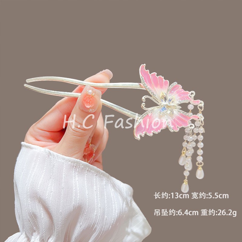 新中式U型蝴蝶流苏发簪高级感簪子古风流苏步摇花朵发钗子旗袍配