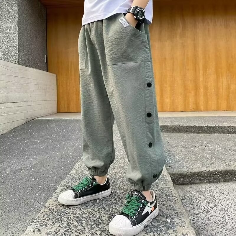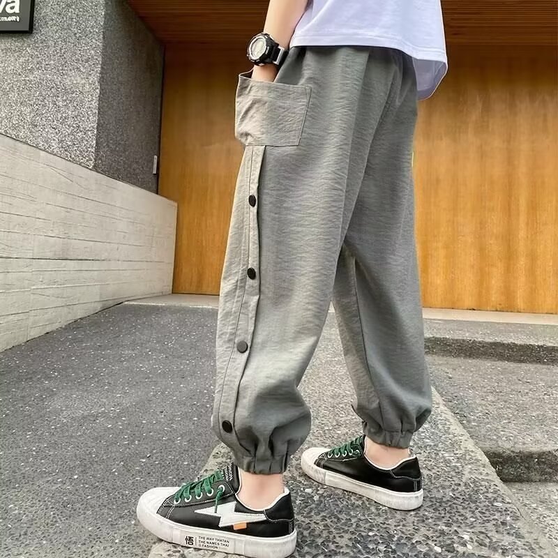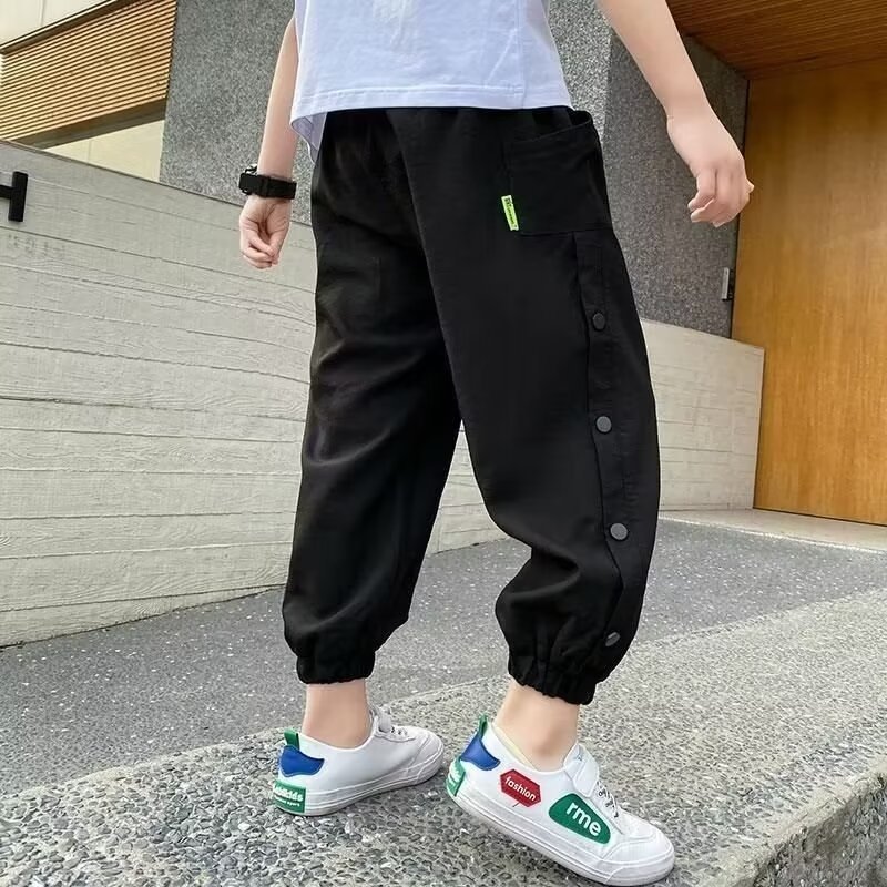 童装潮流韩版九分裤子夏季宽松直筒束脚工装裤男童ins冰丝速干裤