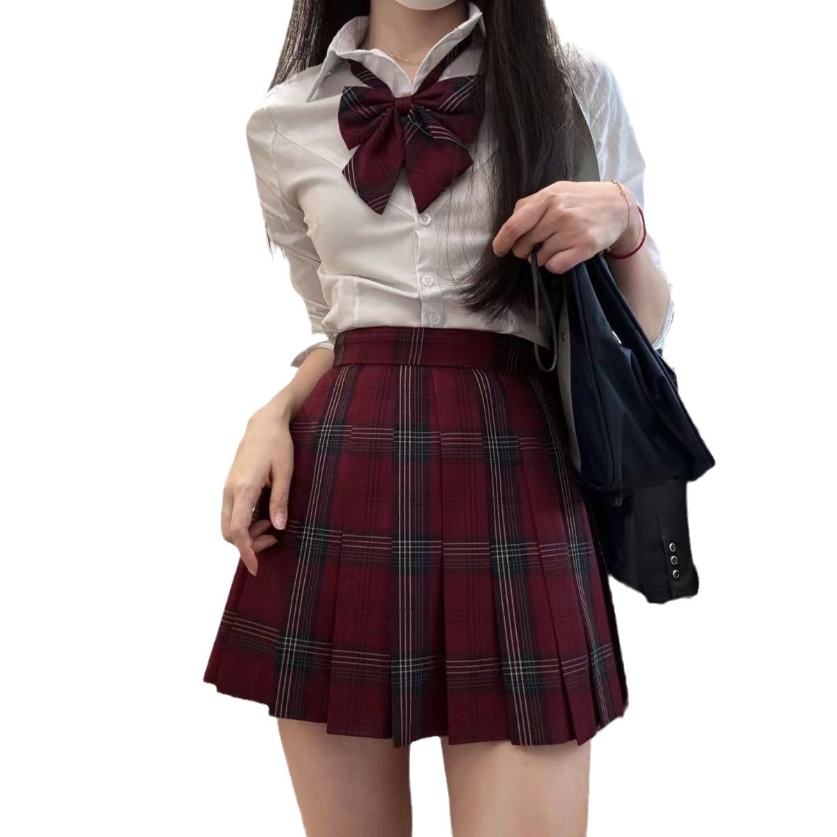 JK制服裙正版高腰半身裙女校供感圣诞红格裙秋冬
