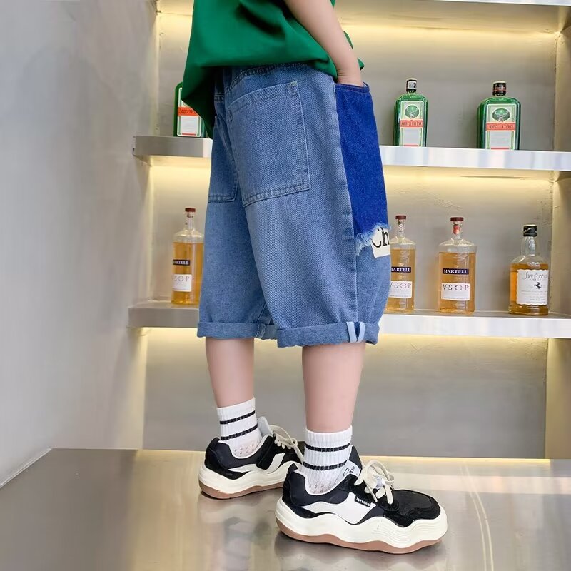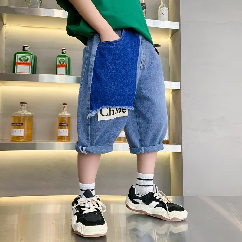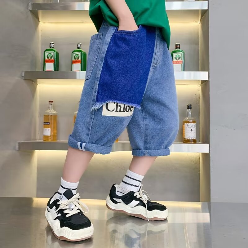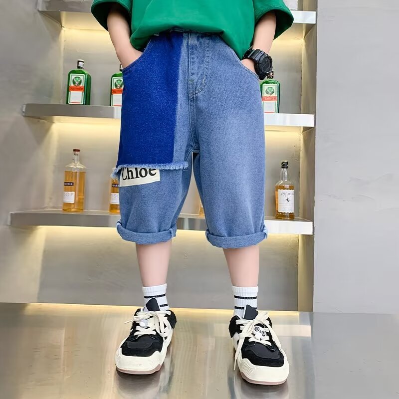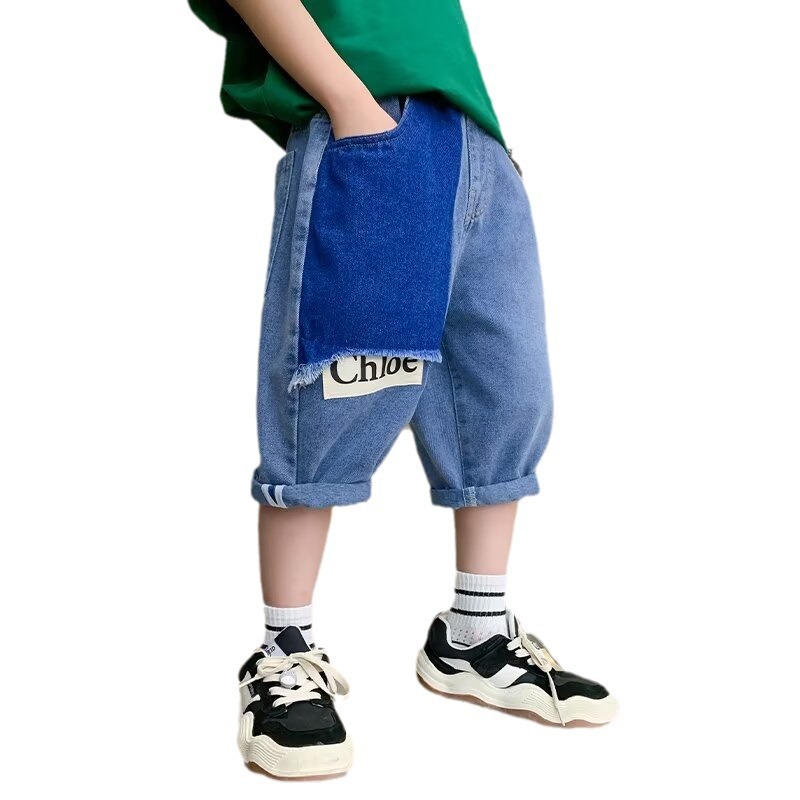 男童夏季拼接牛仔裤新款儿童五分裤子大童休闲中裤潮牌帅跨境
