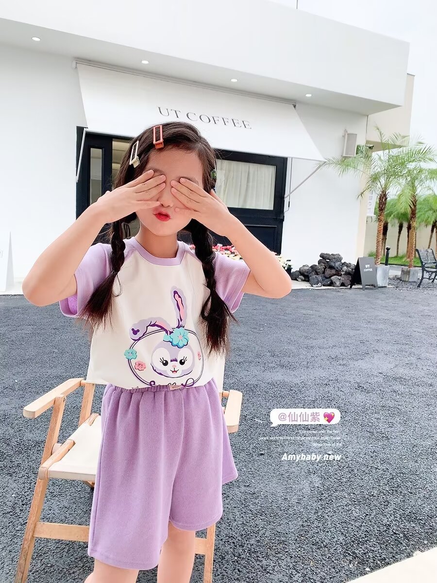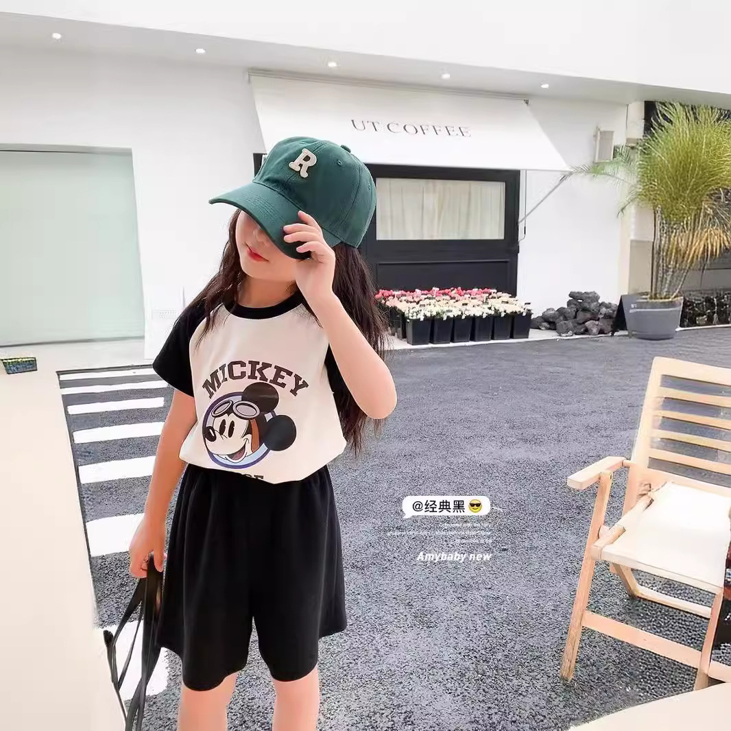 夏季新款童装 女童条纹卡通洋气套装韩版儿童香蕉短袖两件套