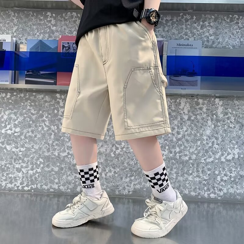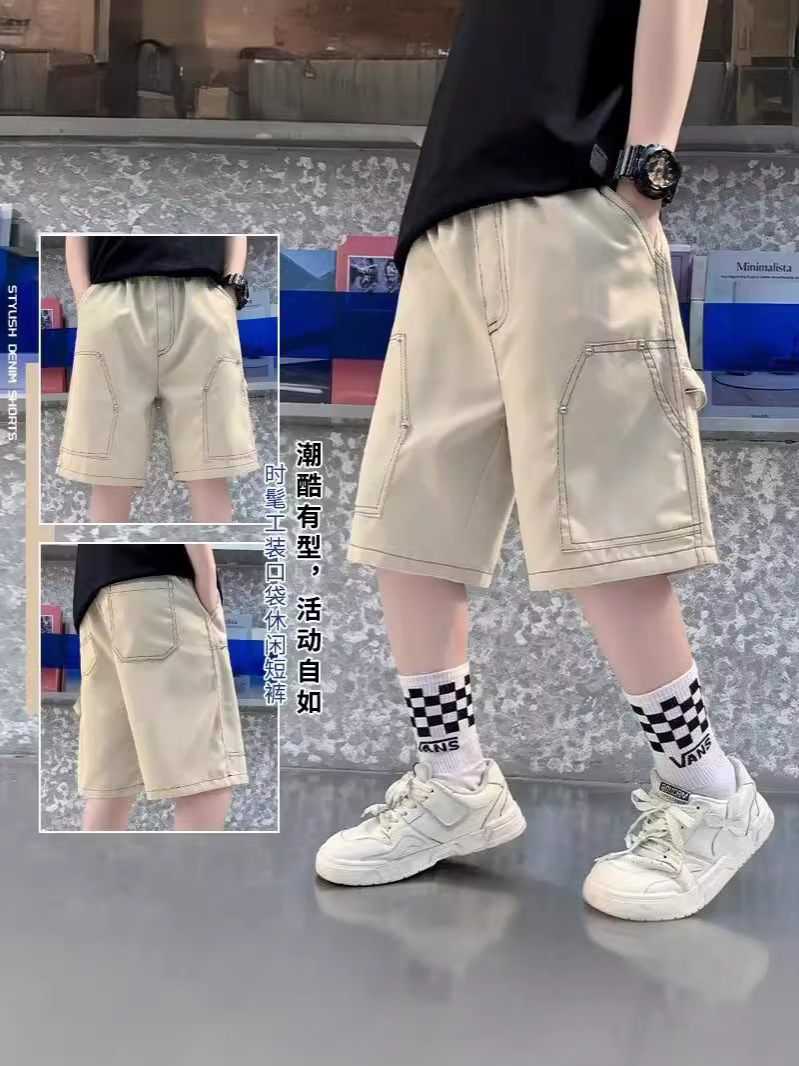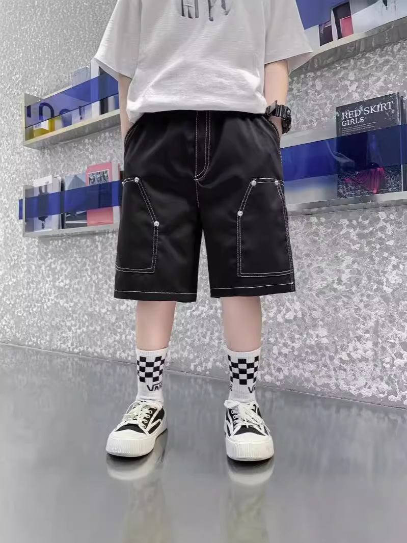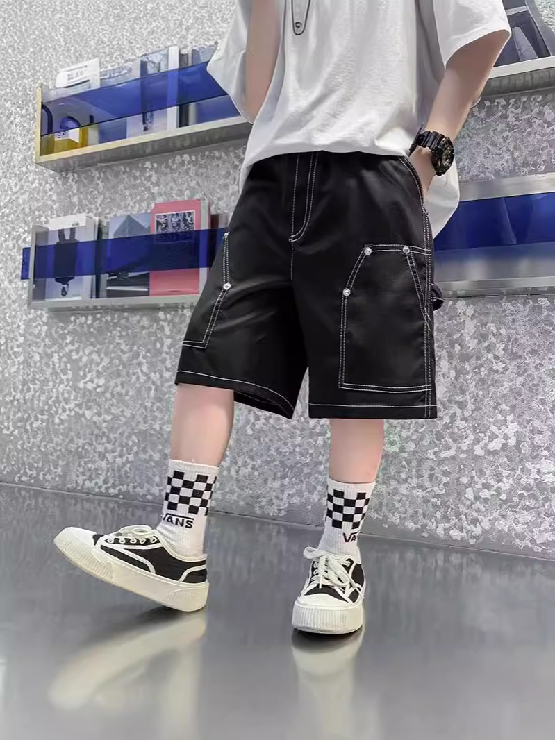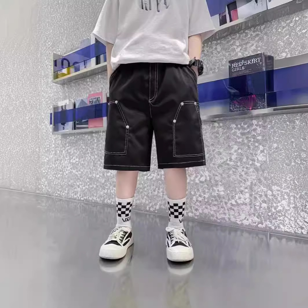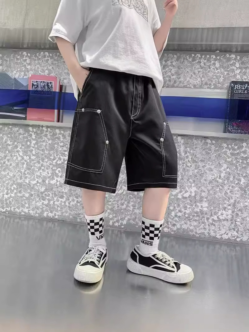 日系宽松五分裤男童明线工装短裤夏季儿童时尚休闲中裤潮跨境